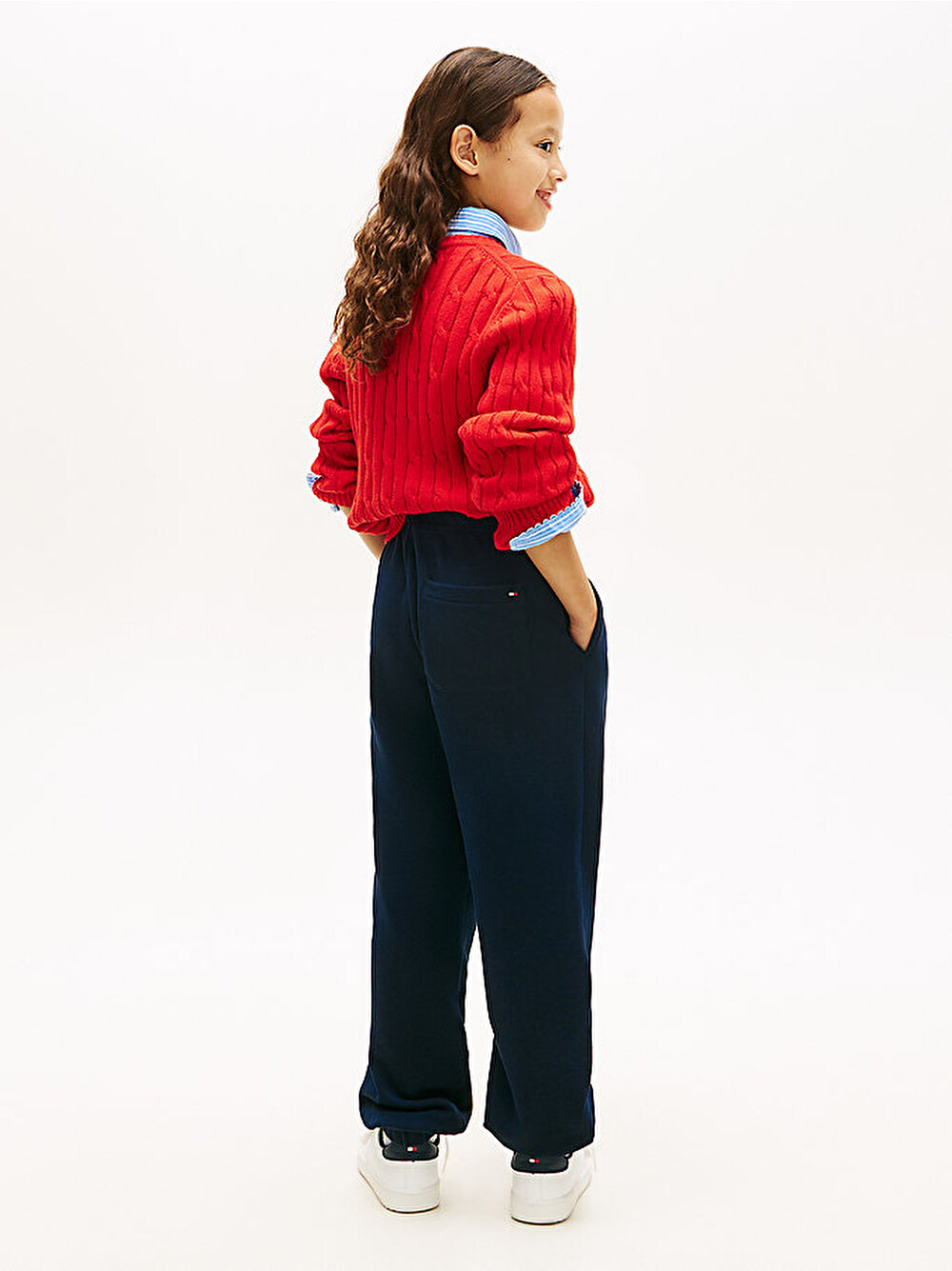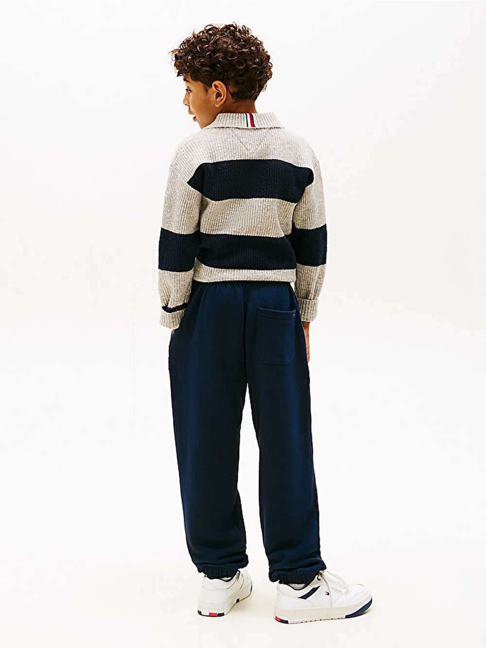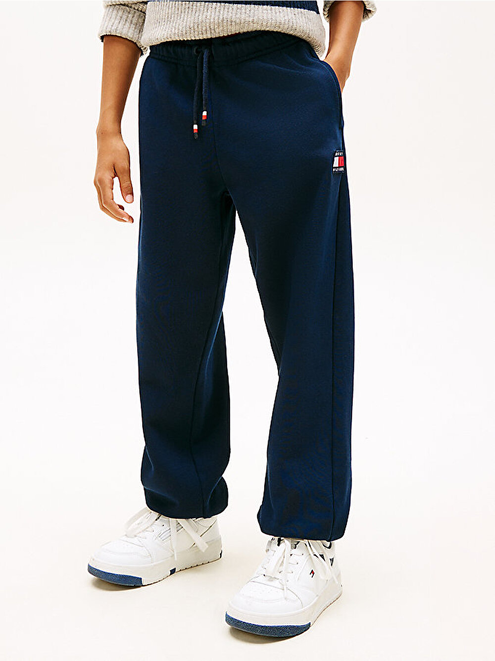 Saf pamuklu terry kumaştan üretilen bu jogger pantolon, bacak kısmındaki bayrak logolu yama detayıyla miras esintili bir görünüm sunuyor.