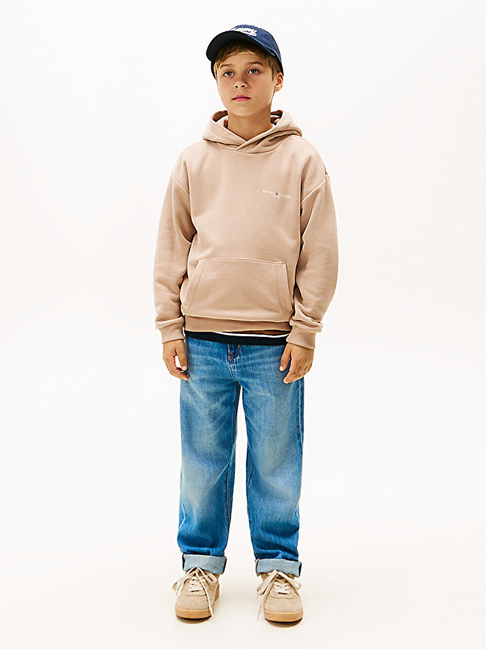 Her hafta sonu gardırobunun vazgeçilmezi olan bu fırçalanmış pamuk karışımlı polar kapüşonlu, rahat bir kanguru cebine ve göze çarpmayan, imza bir markalamaya sahip.
