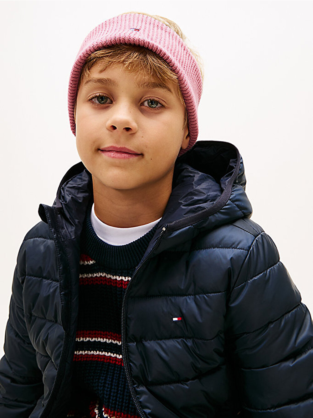 Bu kalın ribana örgülü saç bandı, saf pamuk ipliği kullanılarak hazırlanmış ve ön kısmı küçük bayrak nakışıyla süslenmiştir.