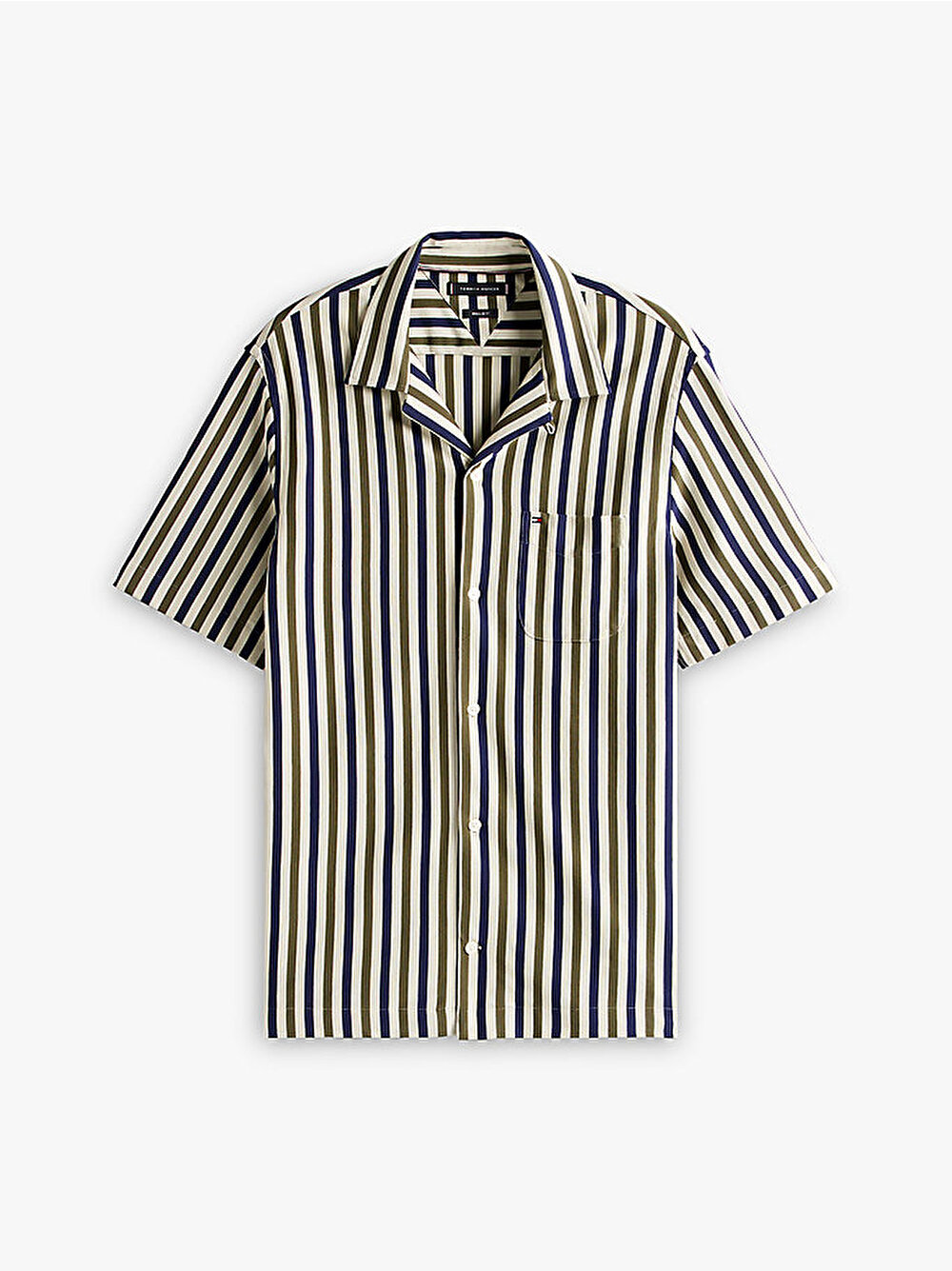 Bu kısa kollu çizgili gömlek, saf pamuktan üretilmiştir ve koleksiyonunuza benzersiz bir doku katan örme bir yapıya sahiptir.