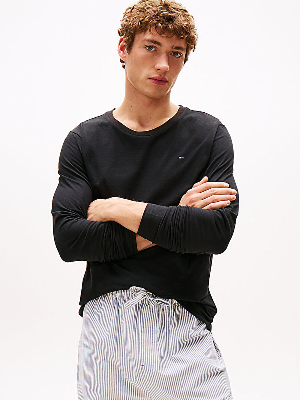 Bu çok yönlü uzun kollu lounge tişört, tüm gün boyunca konfor ve ferahlık sunan nem emici özelliklere sahip saf pamuk jarse kumaştan üretilmiştir.