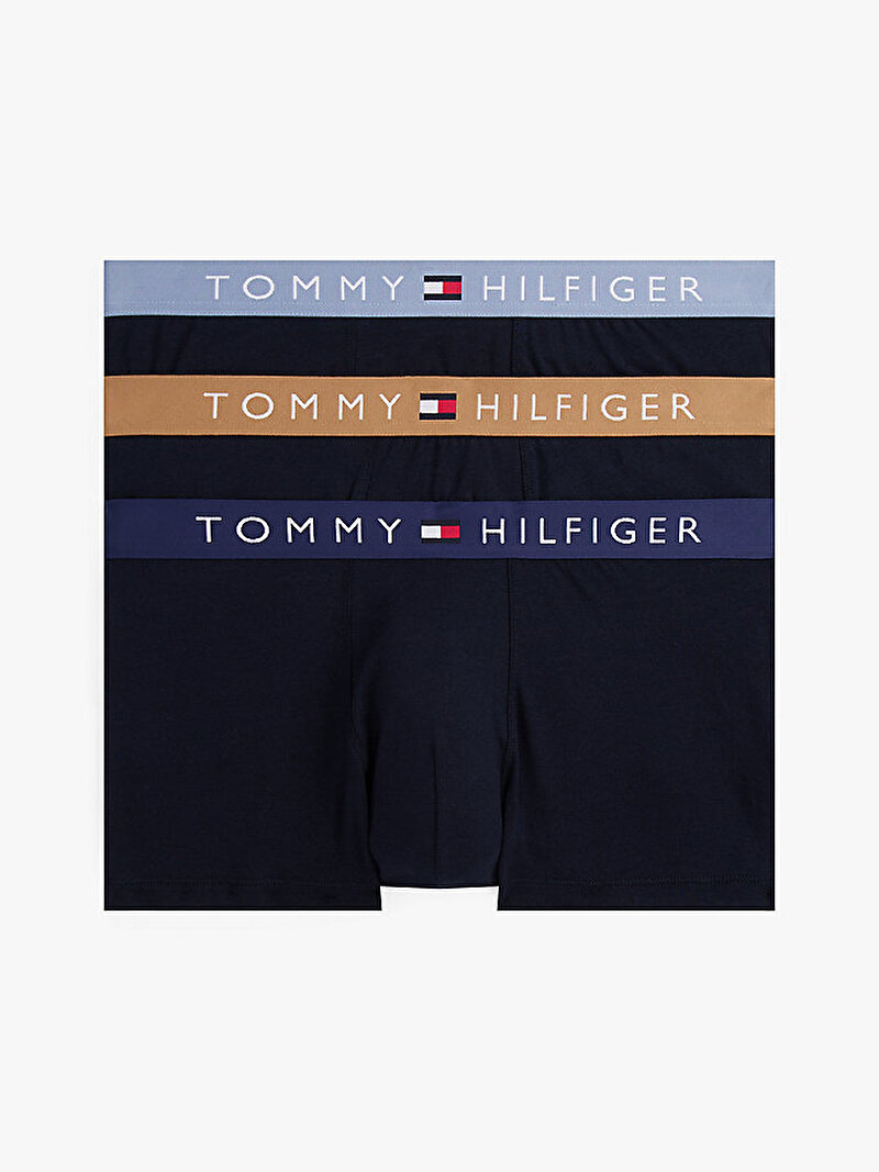 Bu üçlü boxer seti, streç pamuk karışımı kumaştan üretilmiş olup, cesur logolu bel bandıyla imza şık bir dokunuş sunuyor.