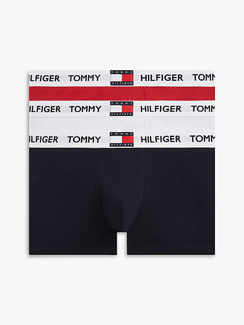 - Her biri miras esintili tekrarlanan logolu bel bandına sahip bu 3'lü esnek pamuklu boxer setiyle iç çamaşırı koleksiyonunuza retro bir hava katın.