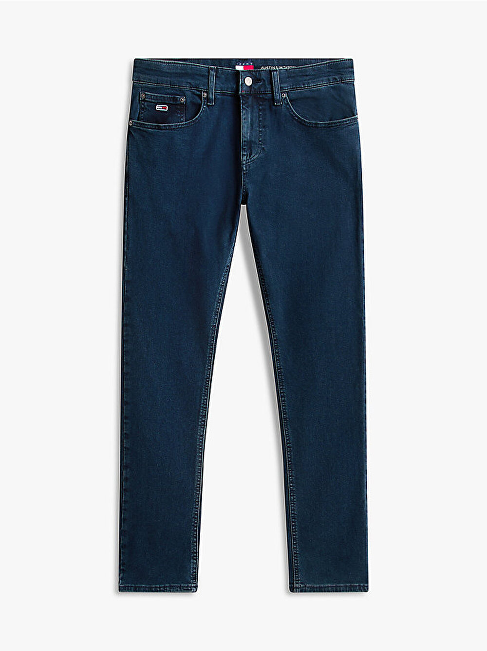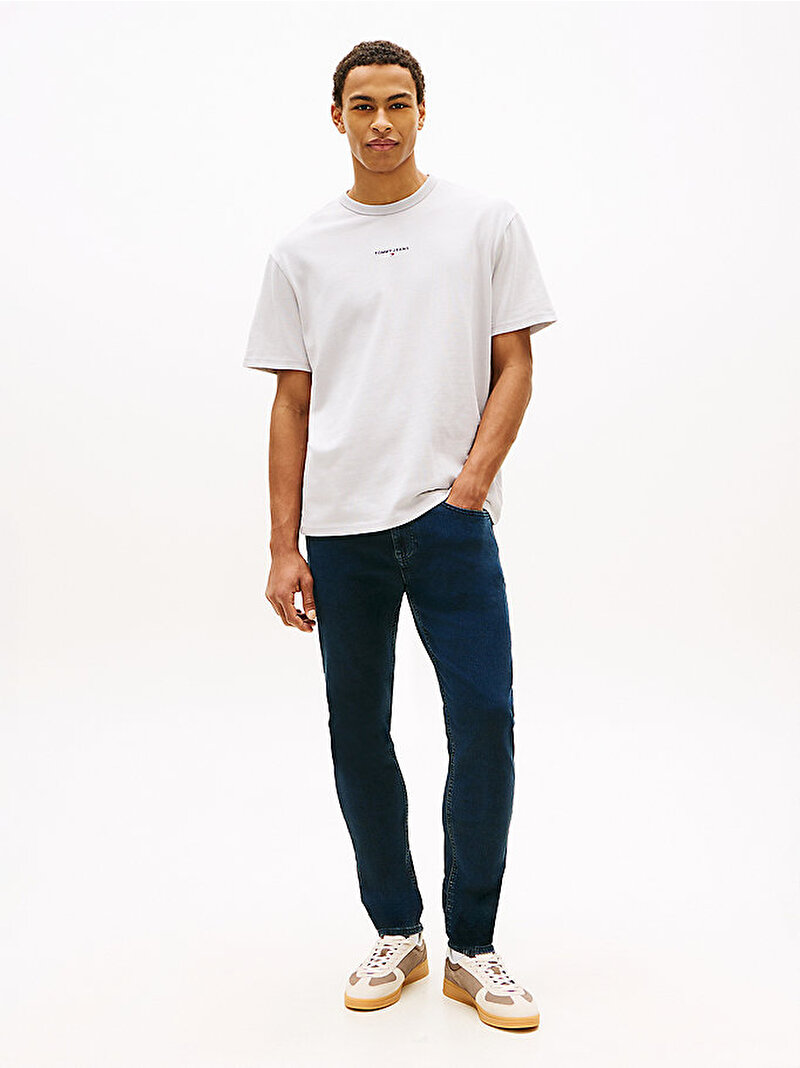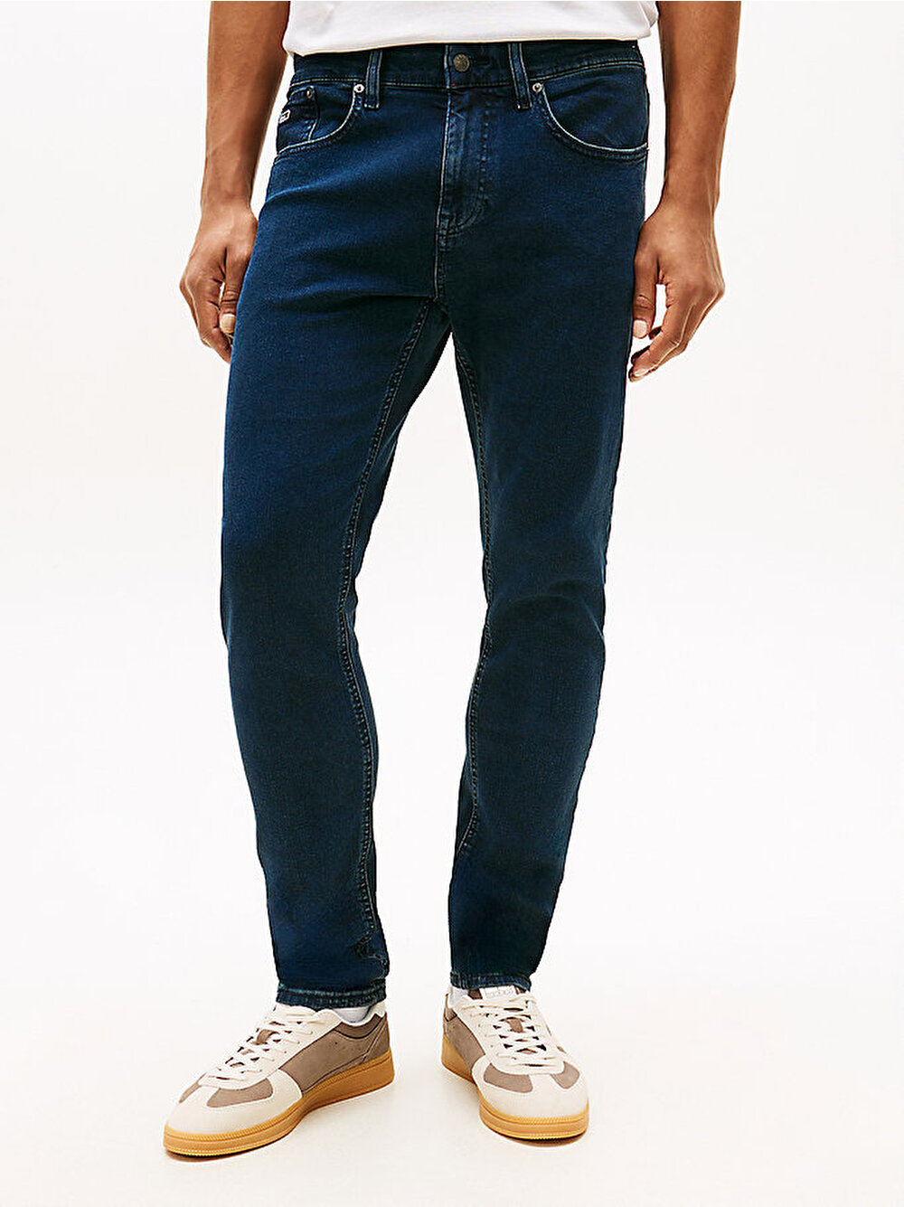 Esnek pamuklu denimden kesilen bu jean pantolon, yalın bir görünüm için bacak boyunca daralan slim-fit bir silüete sahiptir.