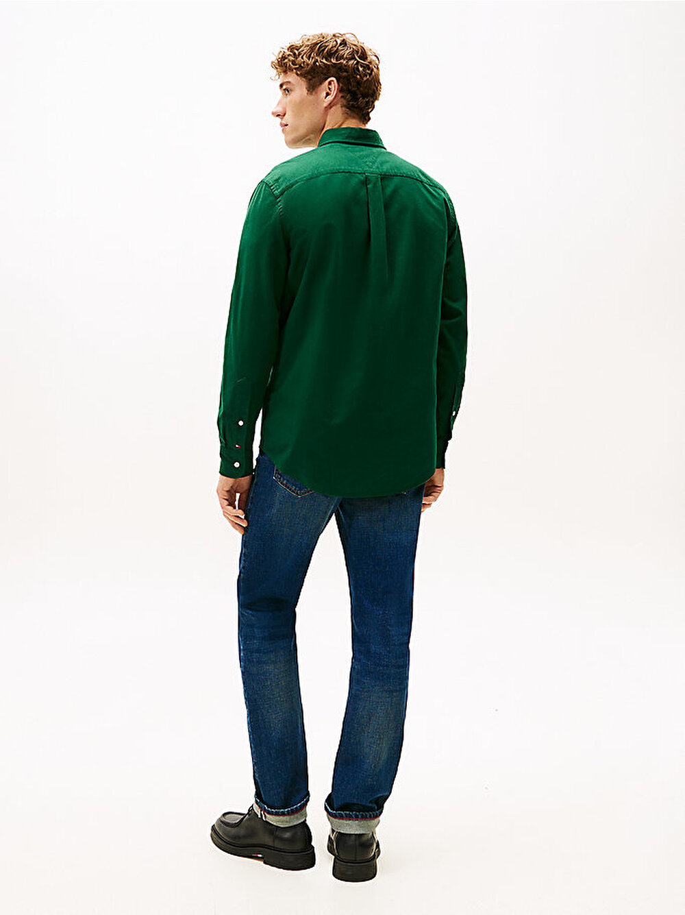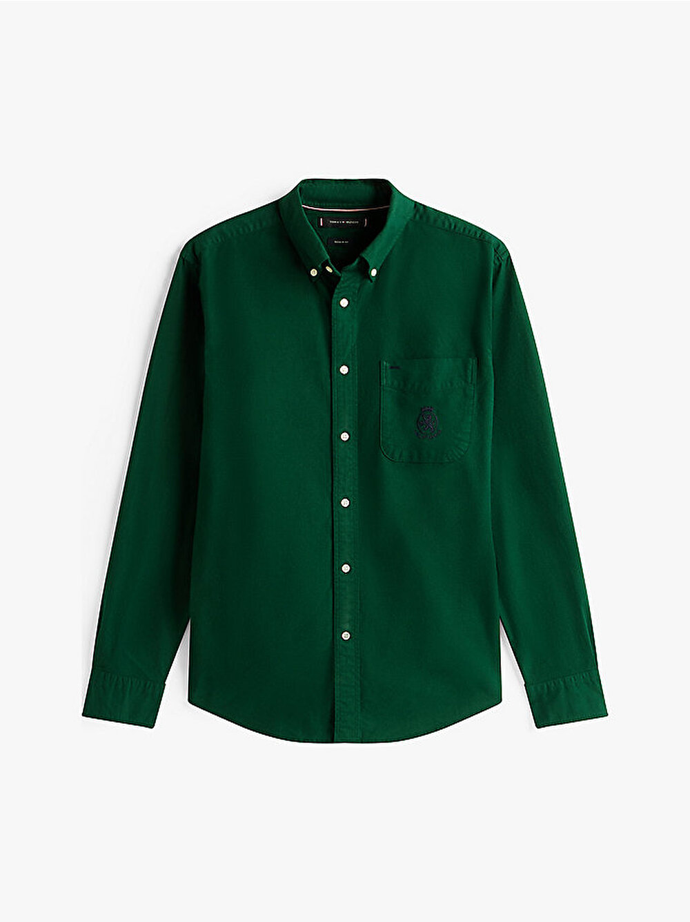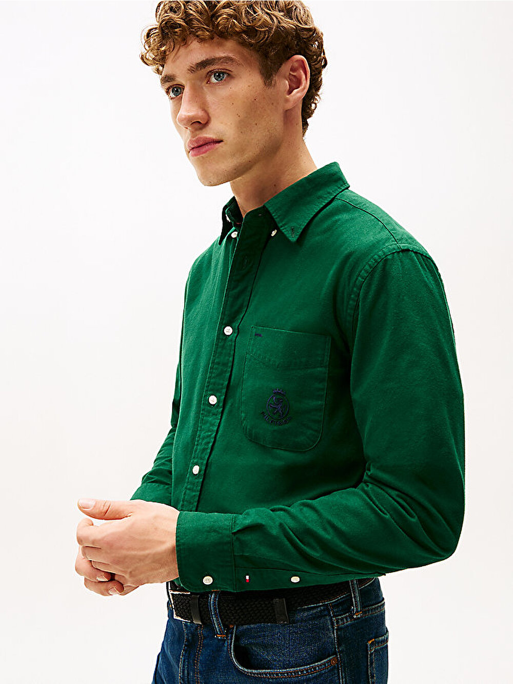 Bu saf fırçalanmış Oxford pamuklu gömlek, zamansız bir düğmeli yakaya sahipken, TH arma nakışı kolejden ilham alan bir stil katıyor.