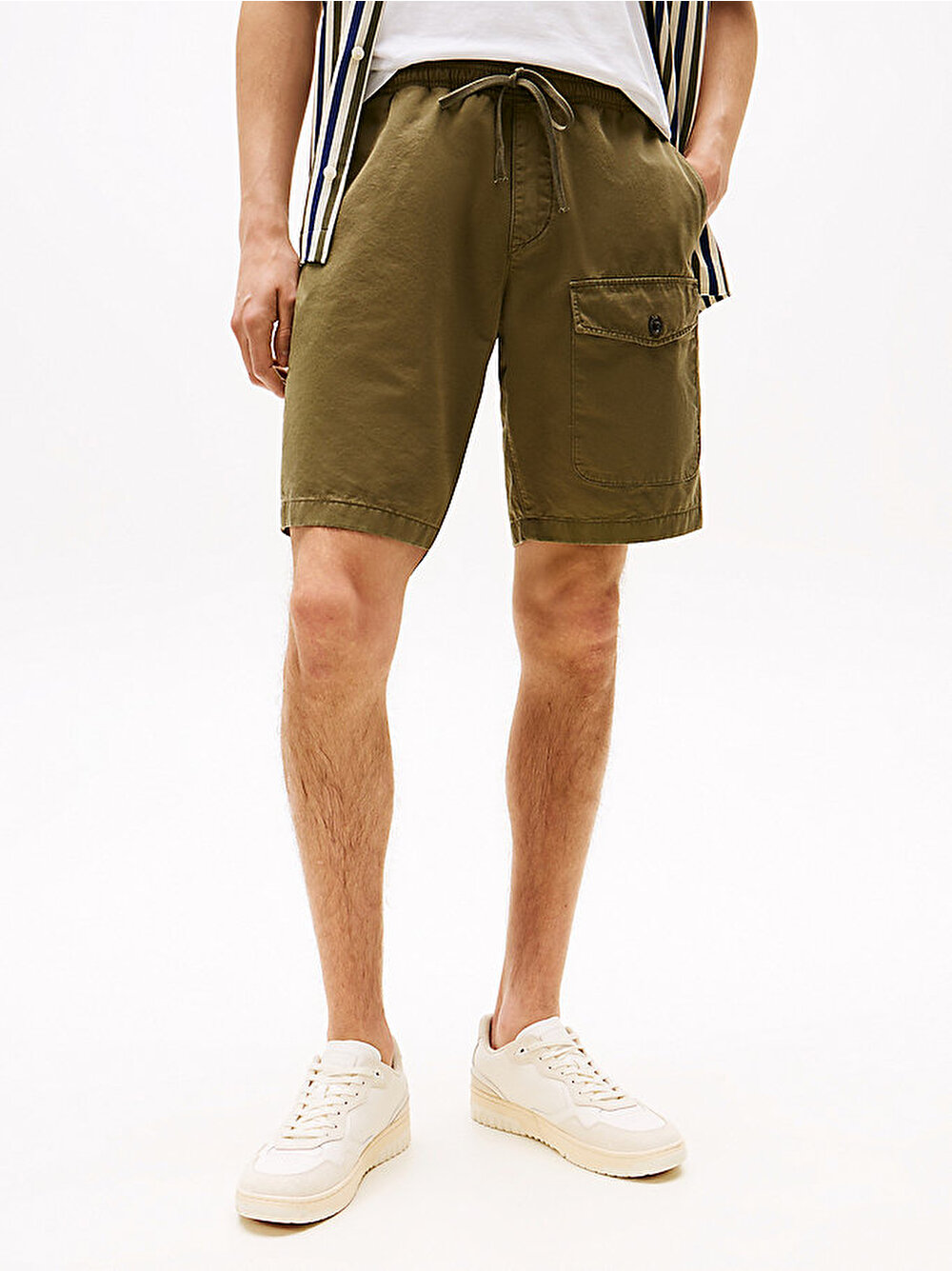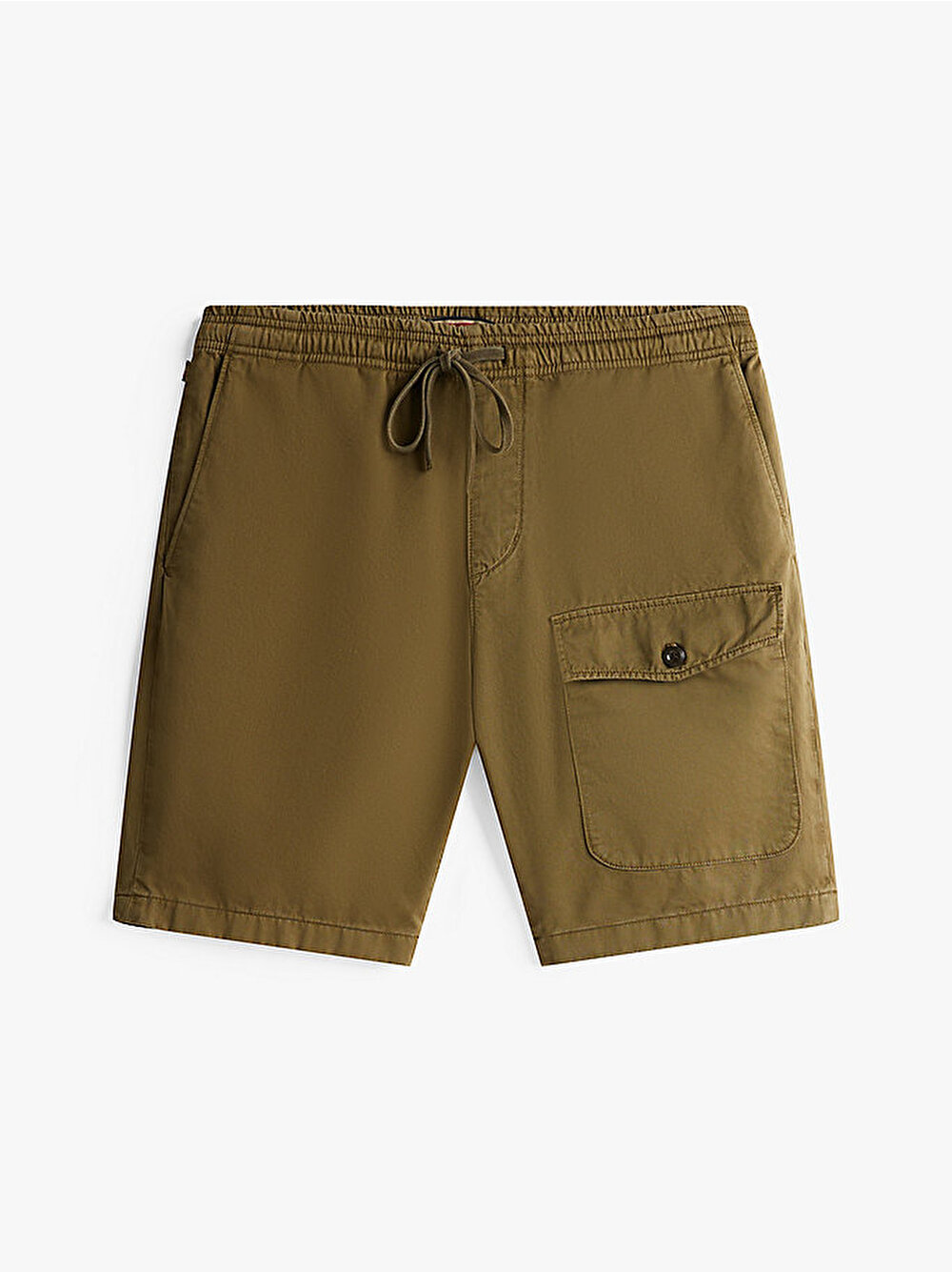 Konfeksiyon boyalı saf pamuklu dimi kumaştan üretilen bu rahat cargo şort, işlevsel karakteriyle orijinal bir duruş sergiler.