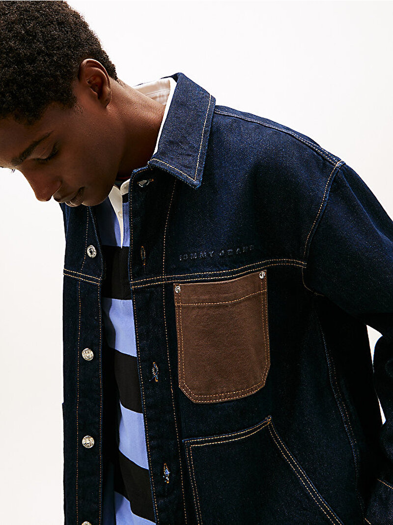 Sert denim kumaştan üretilen ve çoklu kapaklı cepleriyle işlevsel bir tarz sunan bu iş ceketiyle dış giyim seçeneklerinizi zenginleştirin.