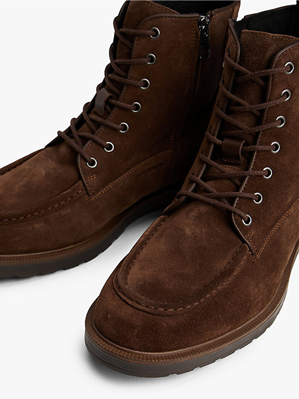 Bu süet bot, modern mokasen burunları ve günlük kullanım kolaylığı sunan yan fermuar detayıyla miras ve outdoor stilini bir araya getiriyor.