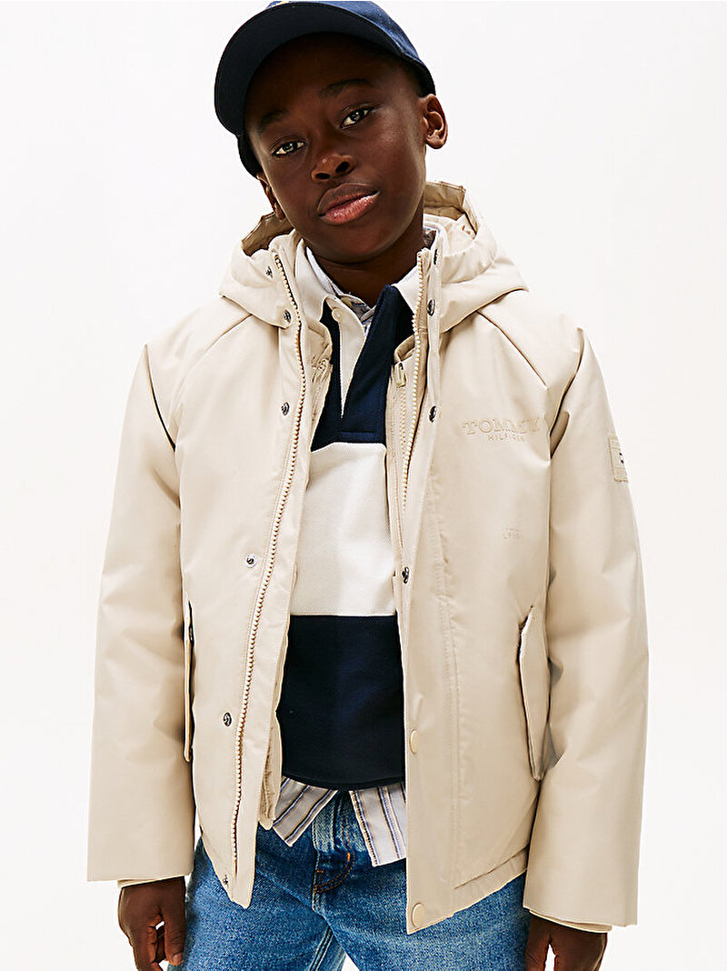 - Kol üzerinde tonal Tommy Hilfiger logolu yama