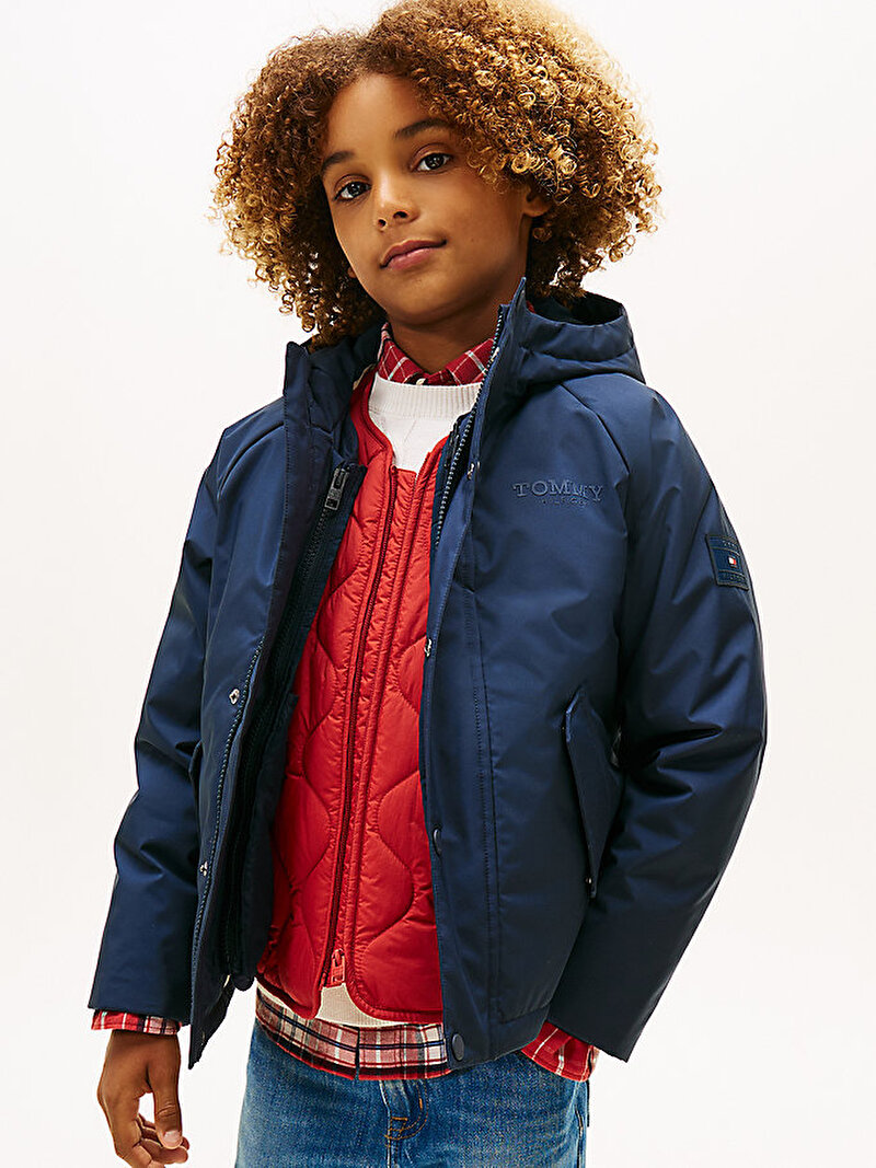 - Kol üzerinde tonal Tommy Hilfiger logolu yama