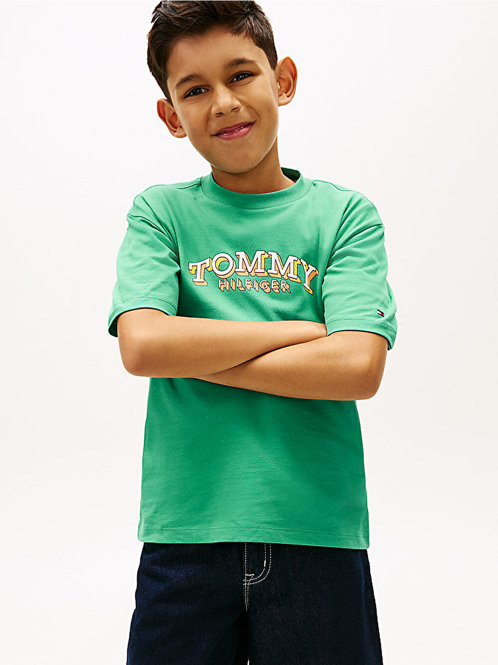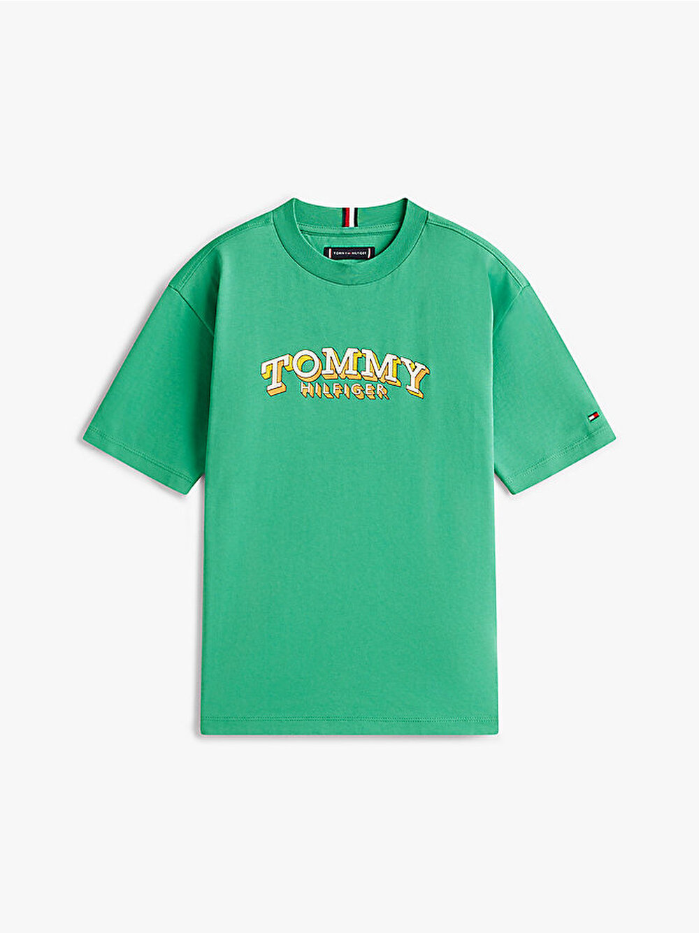 - Saf pamuklu jarseden tasarlanan ve imza şerit detayla zenginleştirilen bu klasik T-shirt'e, 3D bayrak grafiği eğlenceli bir dokunuş katıyor.