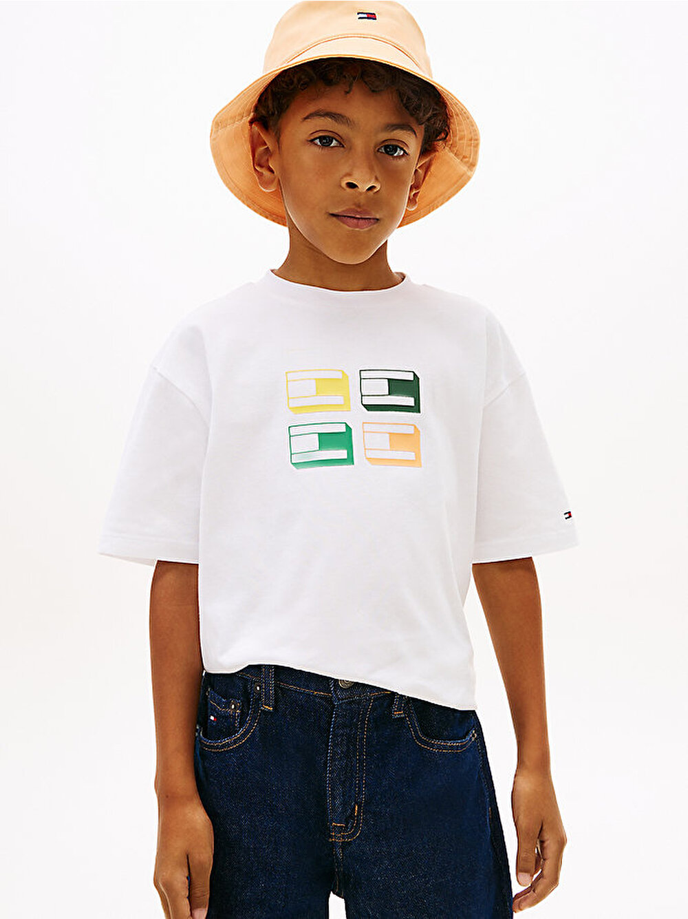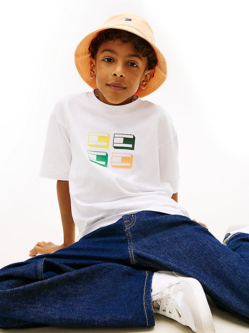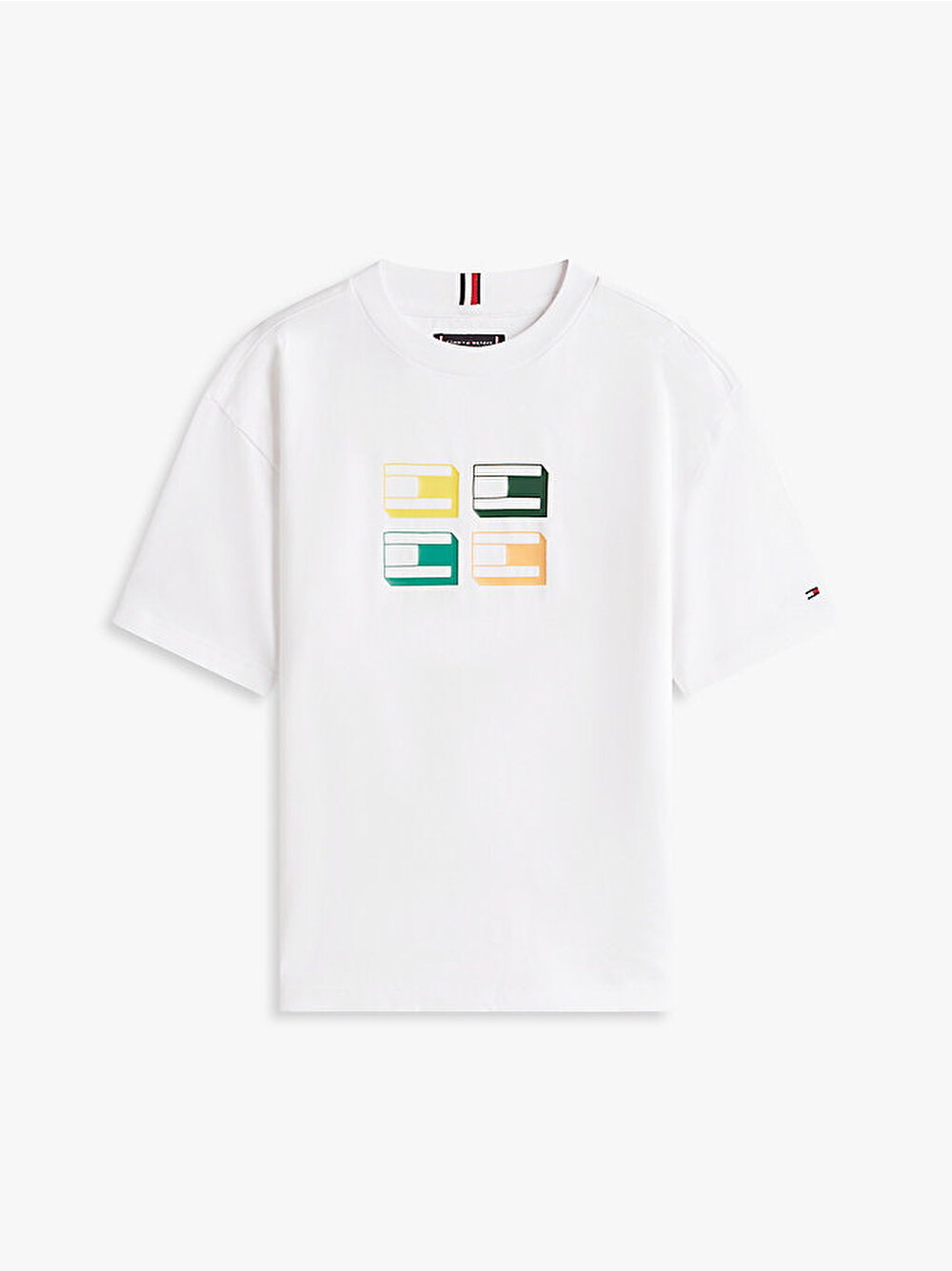 - Saf pamuklu jarseden tasarlanan ve imza şerit detayla zenginleştirilen bu klasik T-shirt'e, 3D bayrak grafiği eğlenceli bir dokunuş katıyor.