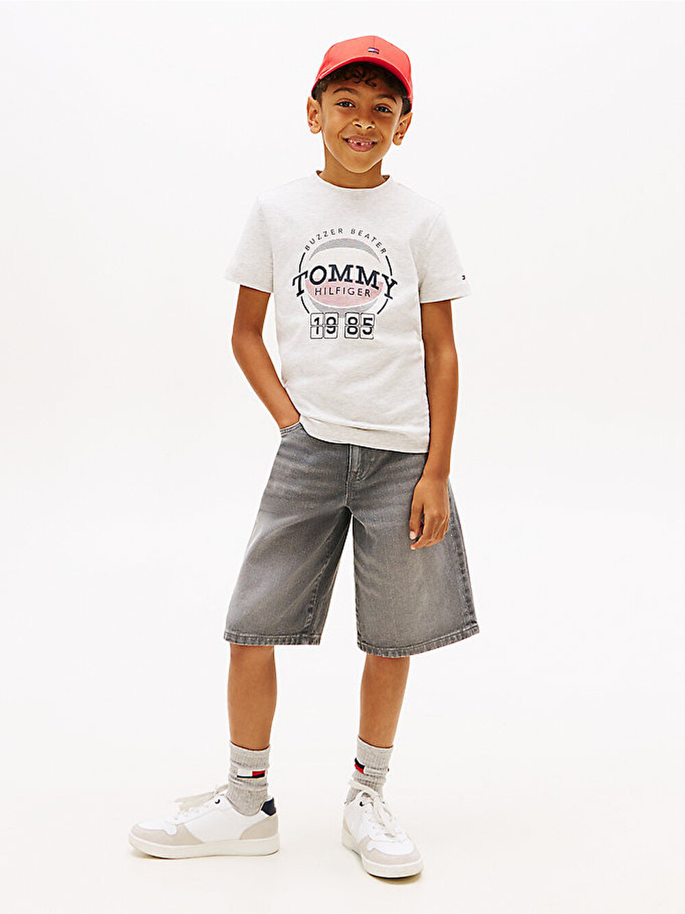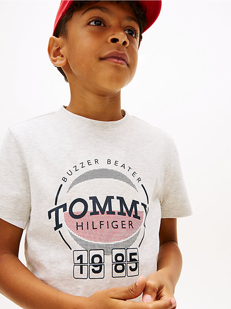 - • Göğüste Tommy Hilfiger basketbol grafiği