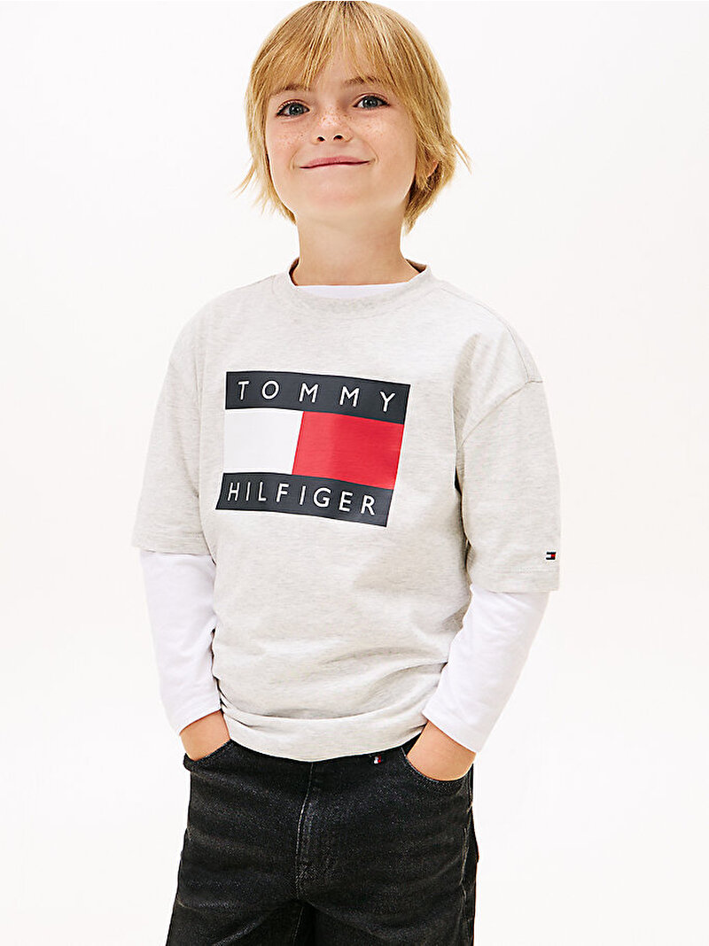 • Göğüste Tommy Hilfiger bayrak baskısı