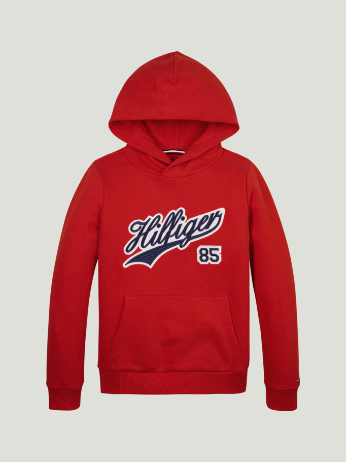 Geniş kanguru cebi ve göğsünde canlı bir el yazılı logo bulunan bu kapüşonlu sweatshirt ile soğuk günlerde katman oluşturun.