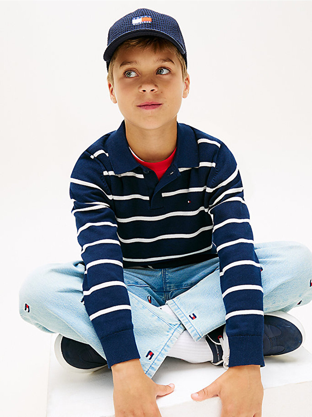 - Göğüste Tommy Hilfiger bayrak işlemeli