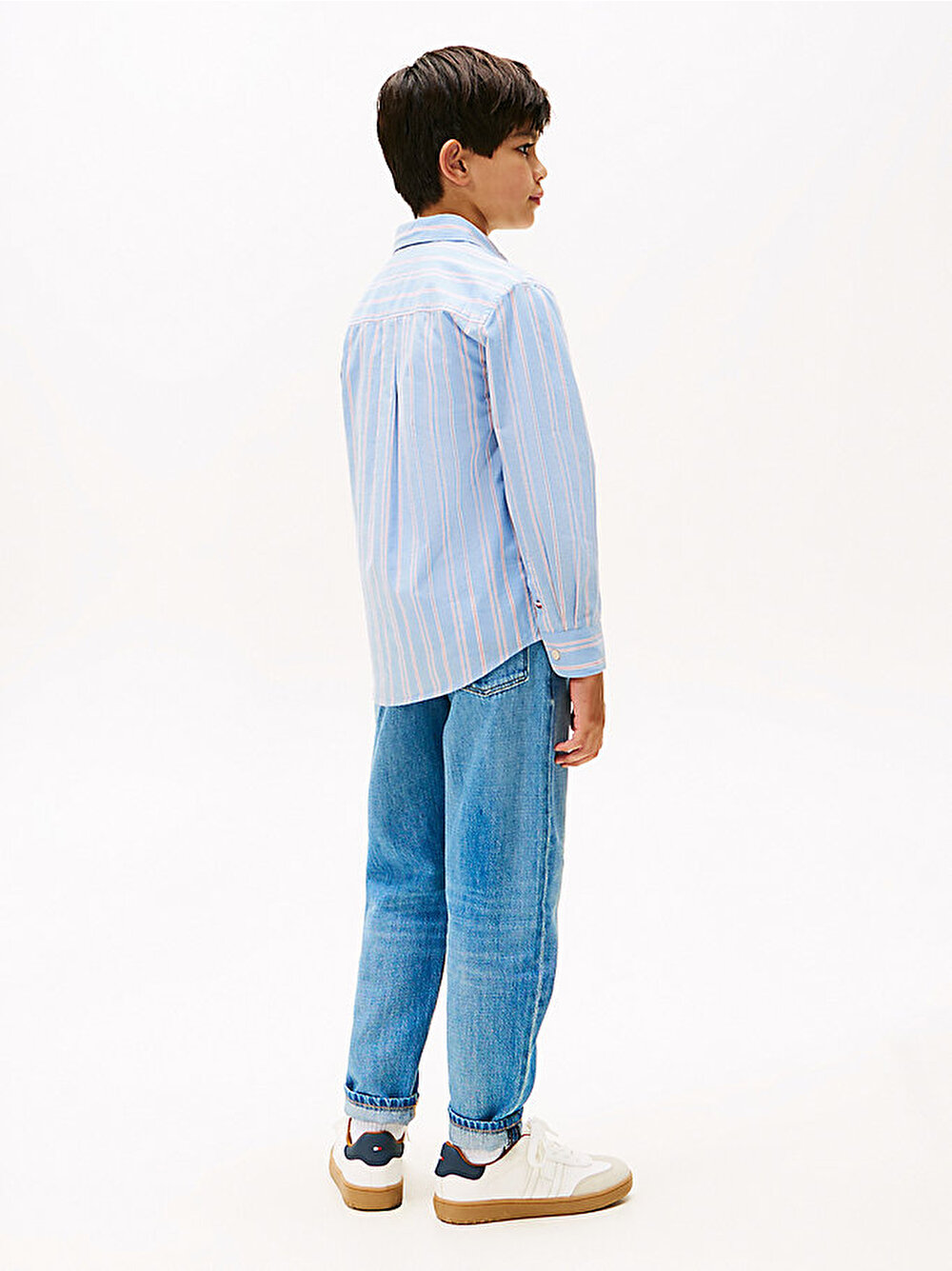Klasik düğmeli yaka ve baştan aşağı büyüleyici dikey çizgilere sahip bu pamuklu gömlekle özel günler için şıklığınızı artırın.
