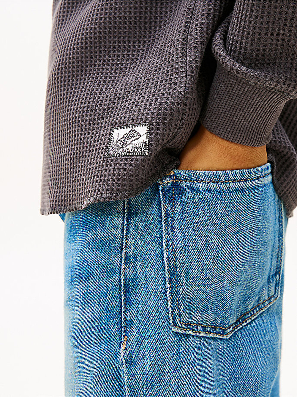 • Etek ucunda Tommy Hilfiger dağ logosu yaması