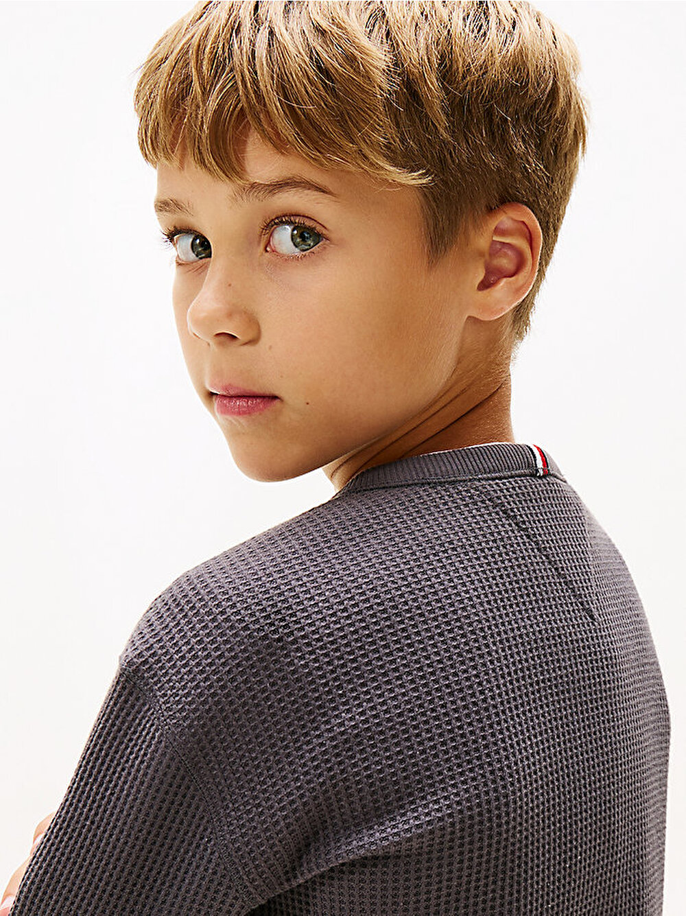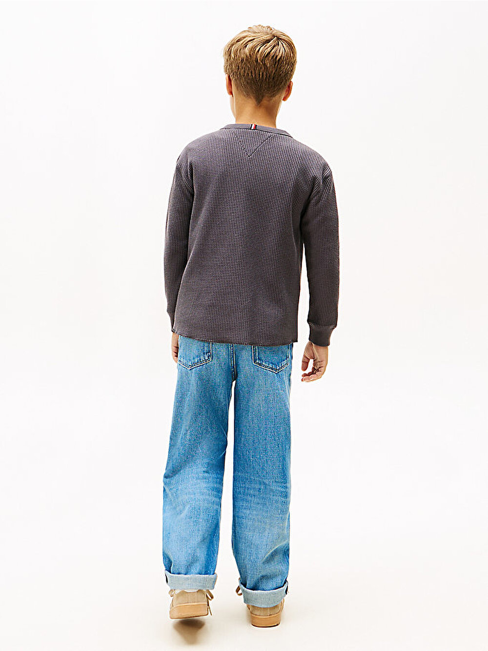 erkek çocuk textured waffle uzun kollu t-shirt