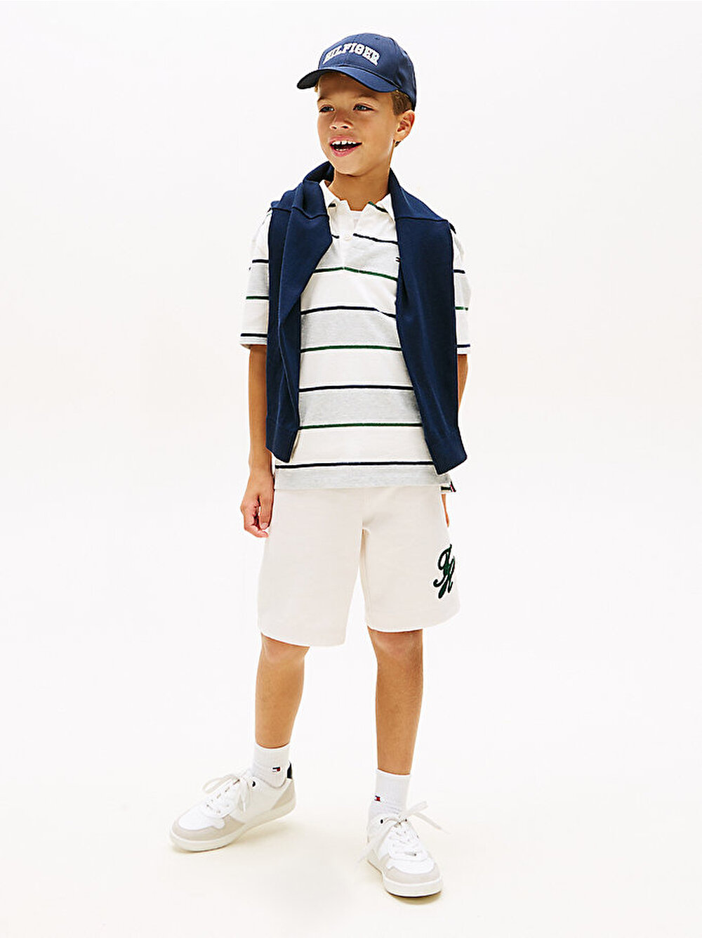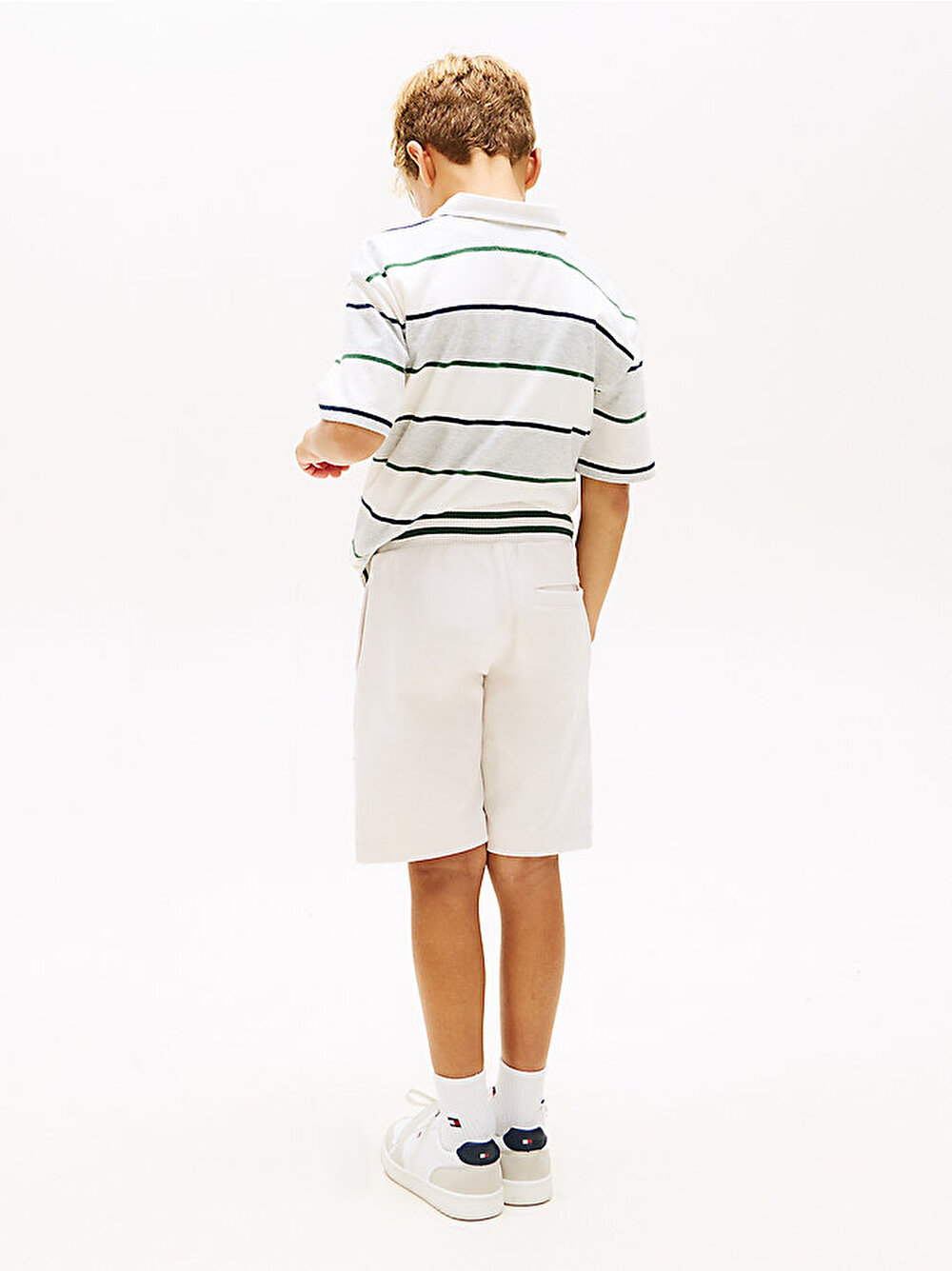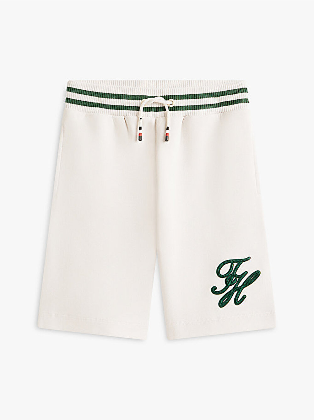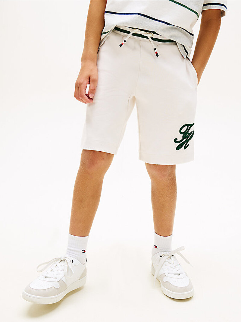 Şık bir athleisure görünüm sunan interlock örgü pamuk karışımlı bu sweat şort, premium el yazısı logo nakışıyla tamamlanıyor.