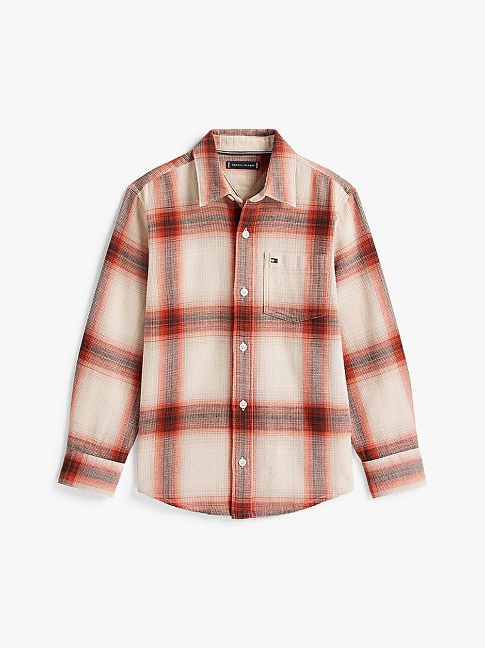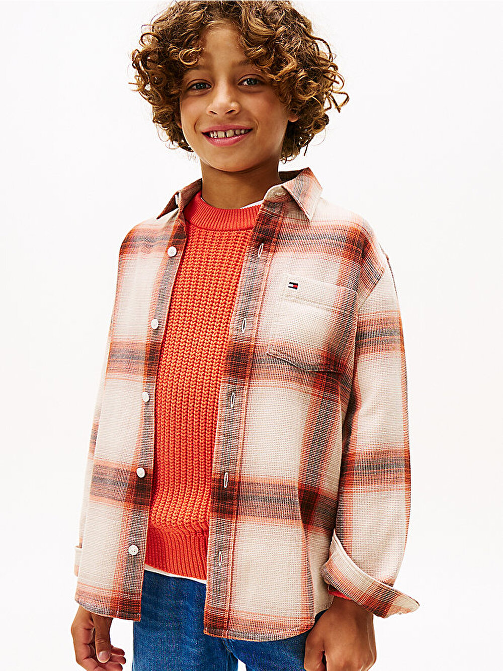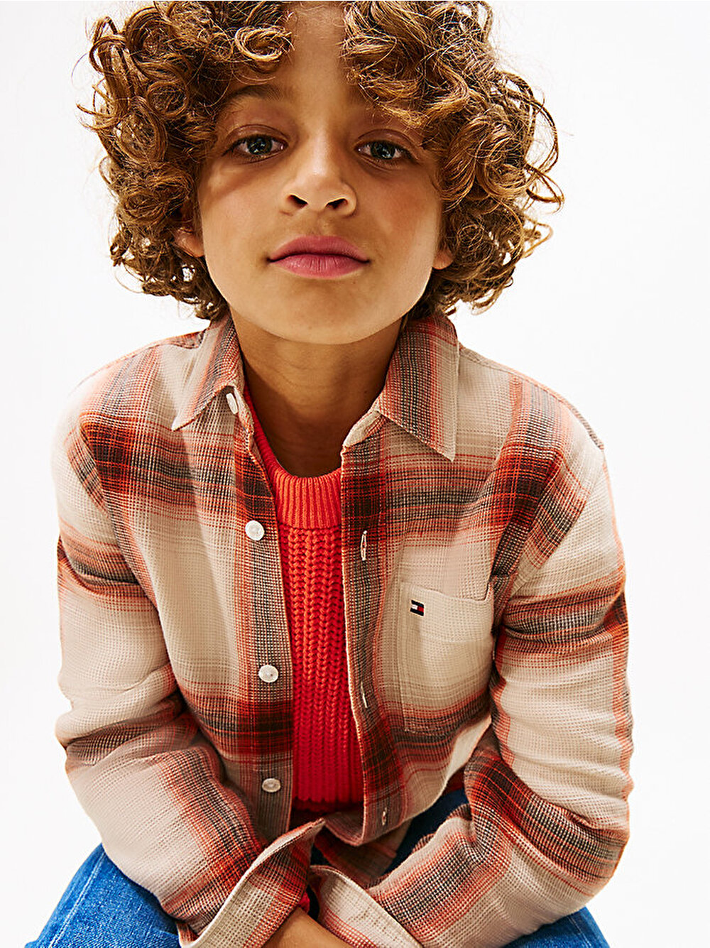 Dokulu waffle örgülü pamuk üzerine canlı bir ekose tasarıma sahip olan bu gömlek, şık ve göz alıcı bir seçimdir.
