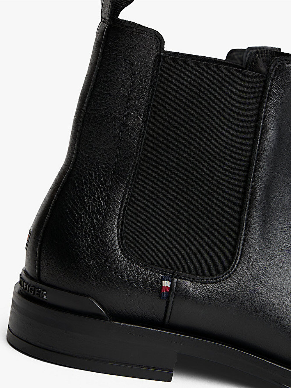 Bu pürüzsüz deri Chelsea bot, arka kısmındaki tanecikli doku detayıyla zarif ve sofistike bir stil sunuyor.
