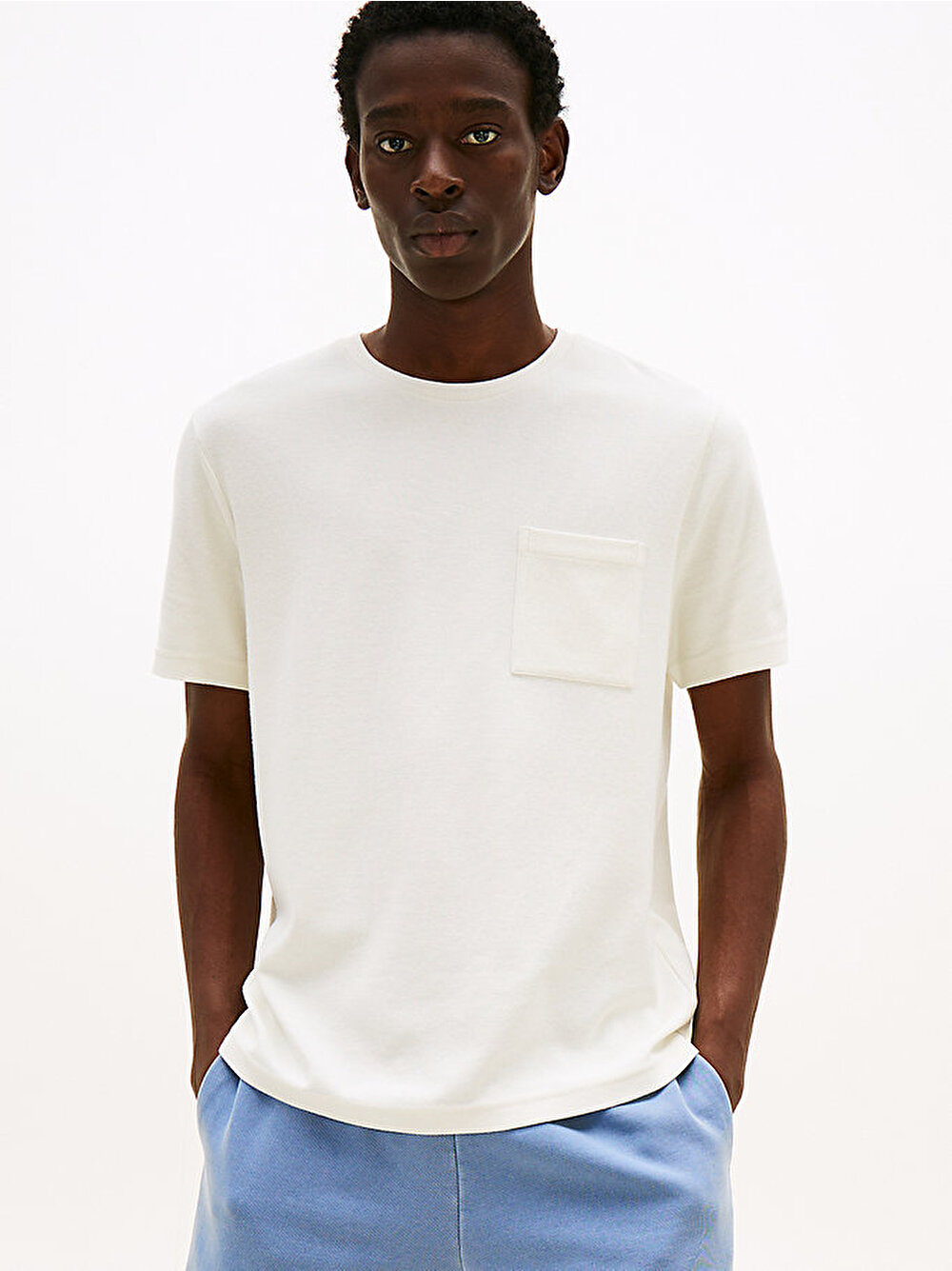 Waffle örgüsü ve yama cep tasarımına sahip bu pamuk karışımlı tişört ile gardırobunuzun vazgeçilmezleri koleksiyonunuza biraz doku katın.