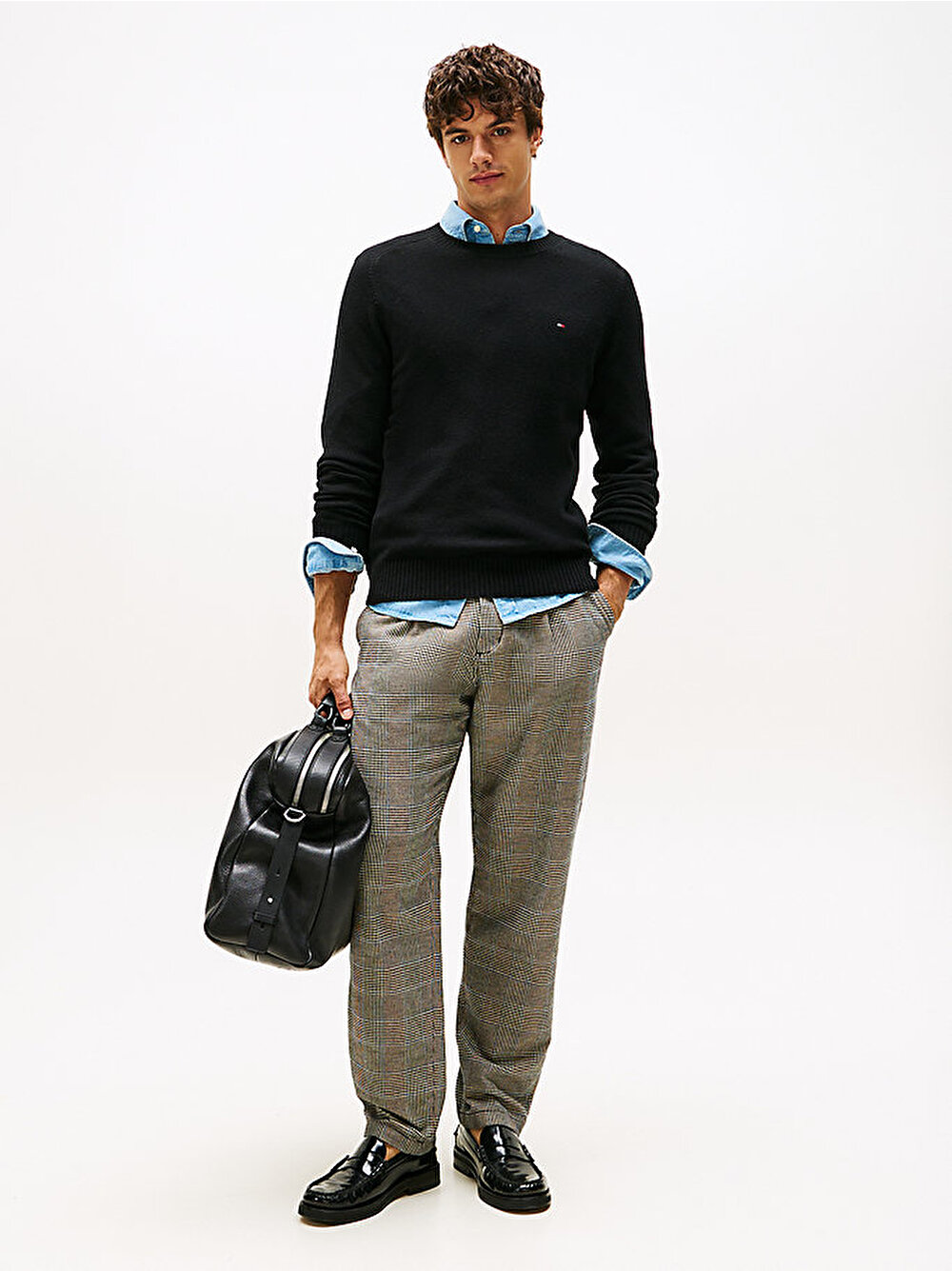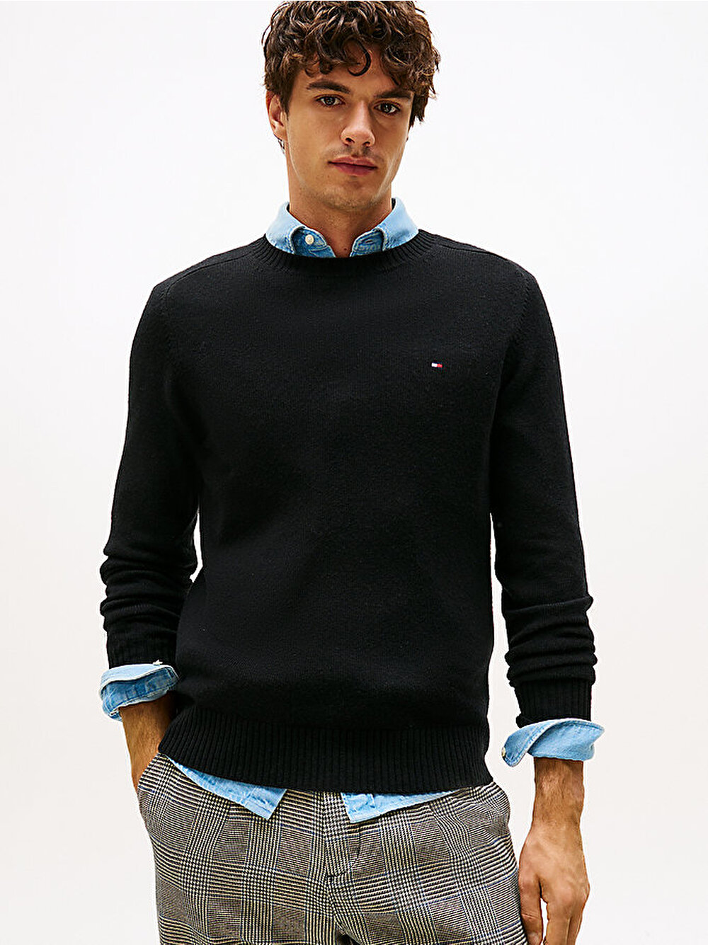 Bu seçkin bisiklet yaka süveter, birinci sınıf bir his için saf kuzu yününden üretilirken, zarif bayrak detayı imza bir dokunuş katıyor.