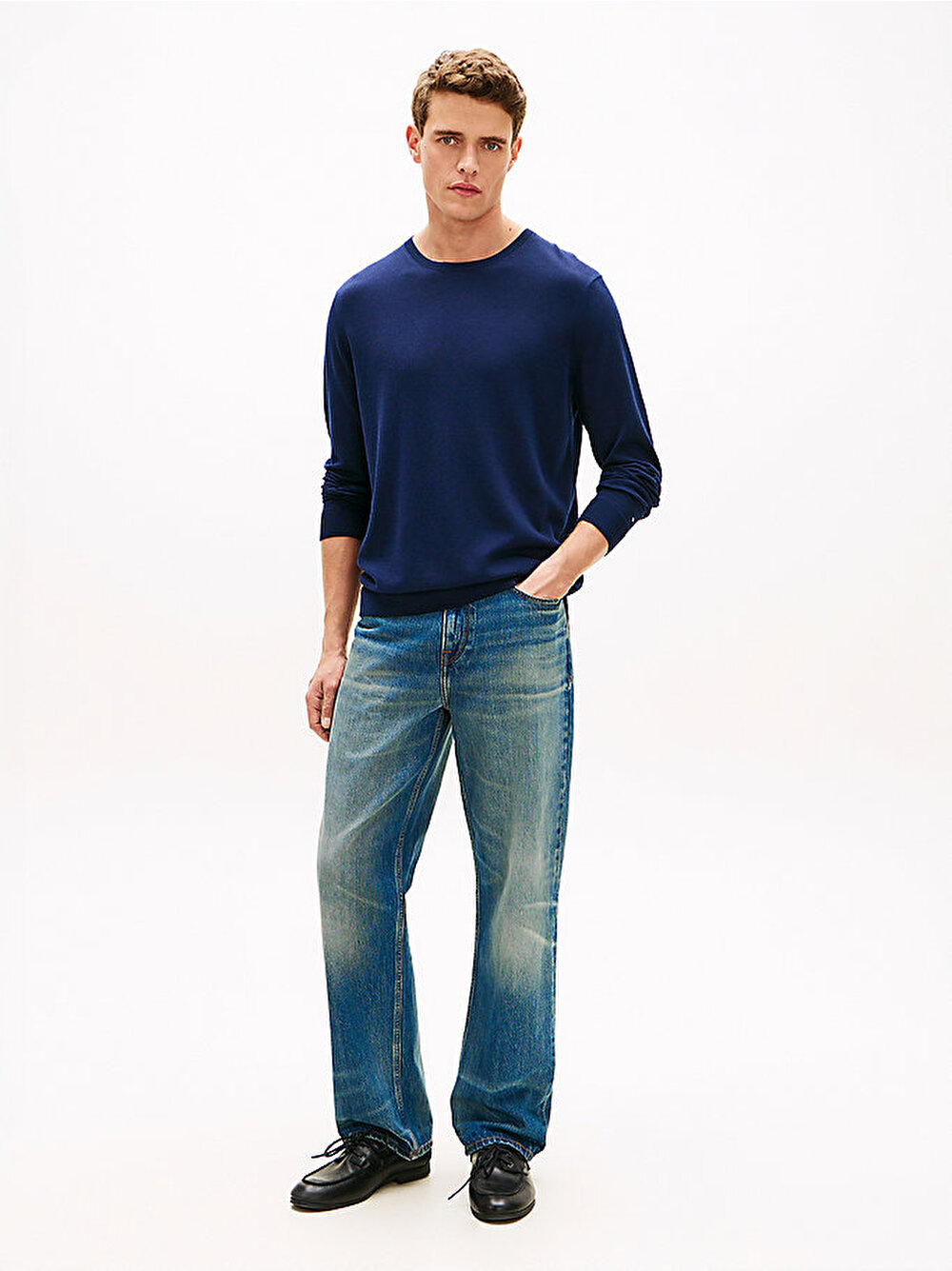 Pürüzsüz pamuk karışımlı iplikle örülen bu zahmetsizce şık kazak, düzgün ribanalı kenarlar ve bayrak nakışıyla tamamlanmıştır.