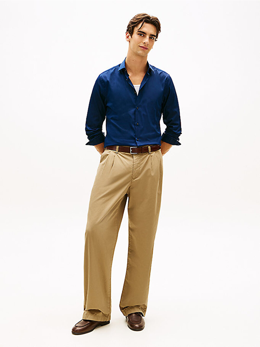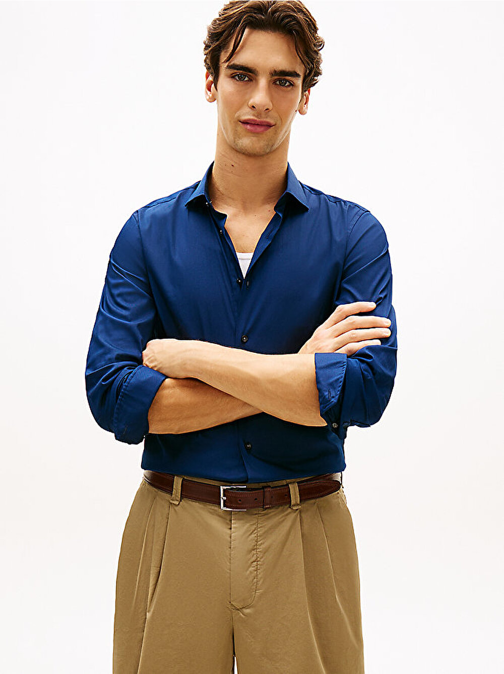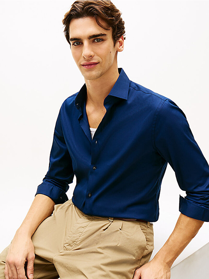 - Bu slim fit gömlek, dört yönlü esnekliğe sahip pamuk karışımlı dimi kumaştan üretilmiştir ve şık-gündelik kombinlerinize esnek bir rahatlık katar.
