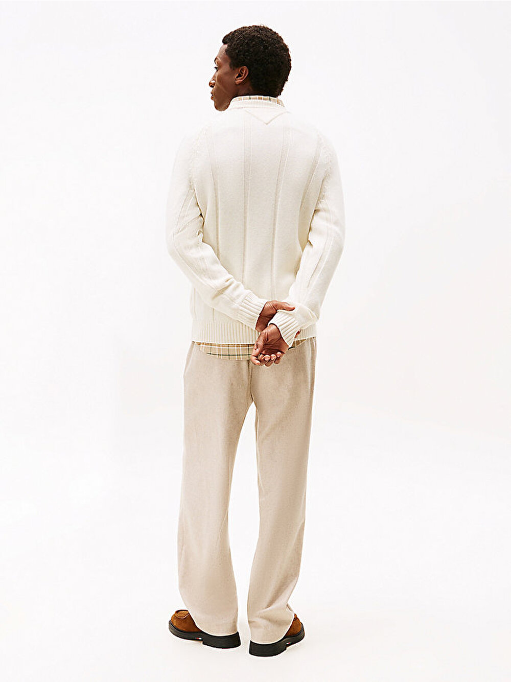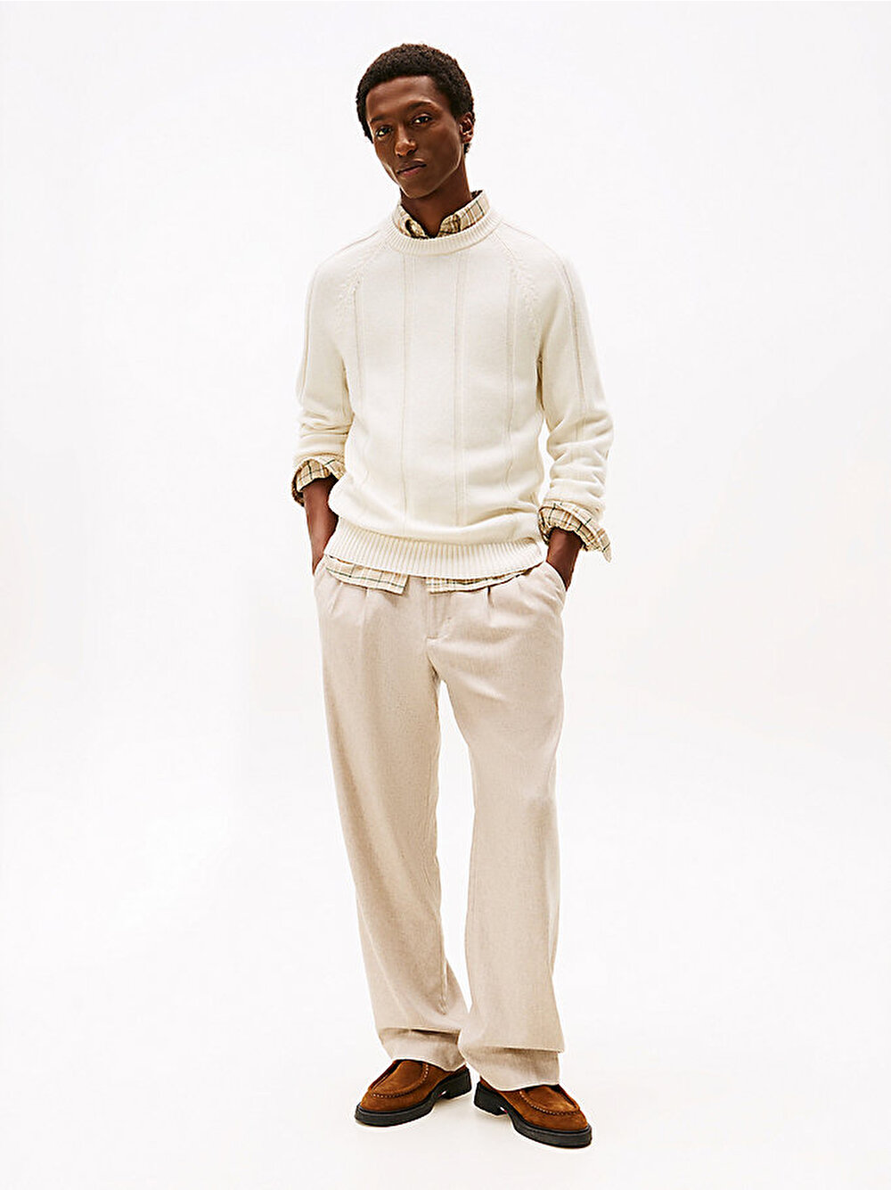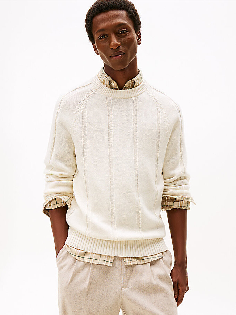 Dokulu örgü, birinci sınıf yün ve pürüzsüz liyosel karışımından üretilen bu kazağa yüksek bir görünüm ve his kazandırır.