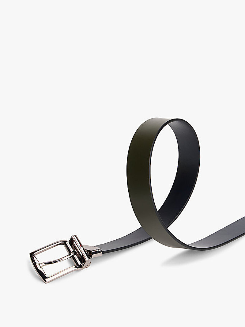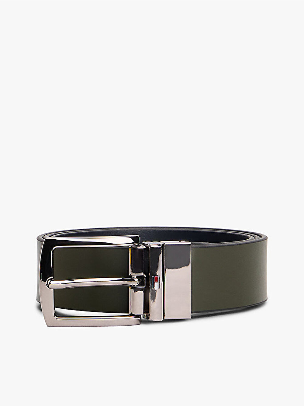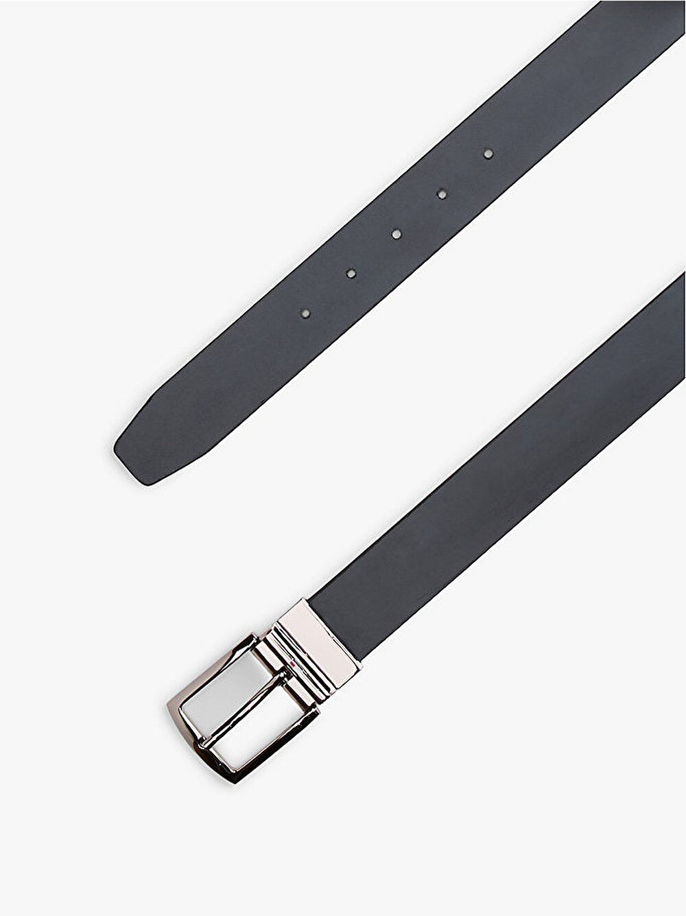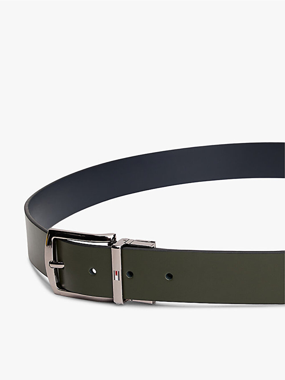 Parlak TH monogram tokayla süslenen bu zarif çift taraflı deri kemerle görünümünüze sofistike bir dokunuş kazandırın.