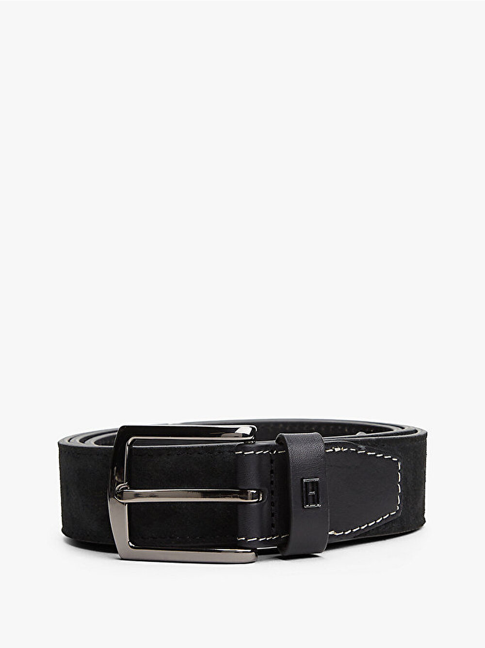 Kontrast üst dikiş detayları ve kare metal tokası ile vurgulanan bu süet kemerle görünümünüze doku katın.