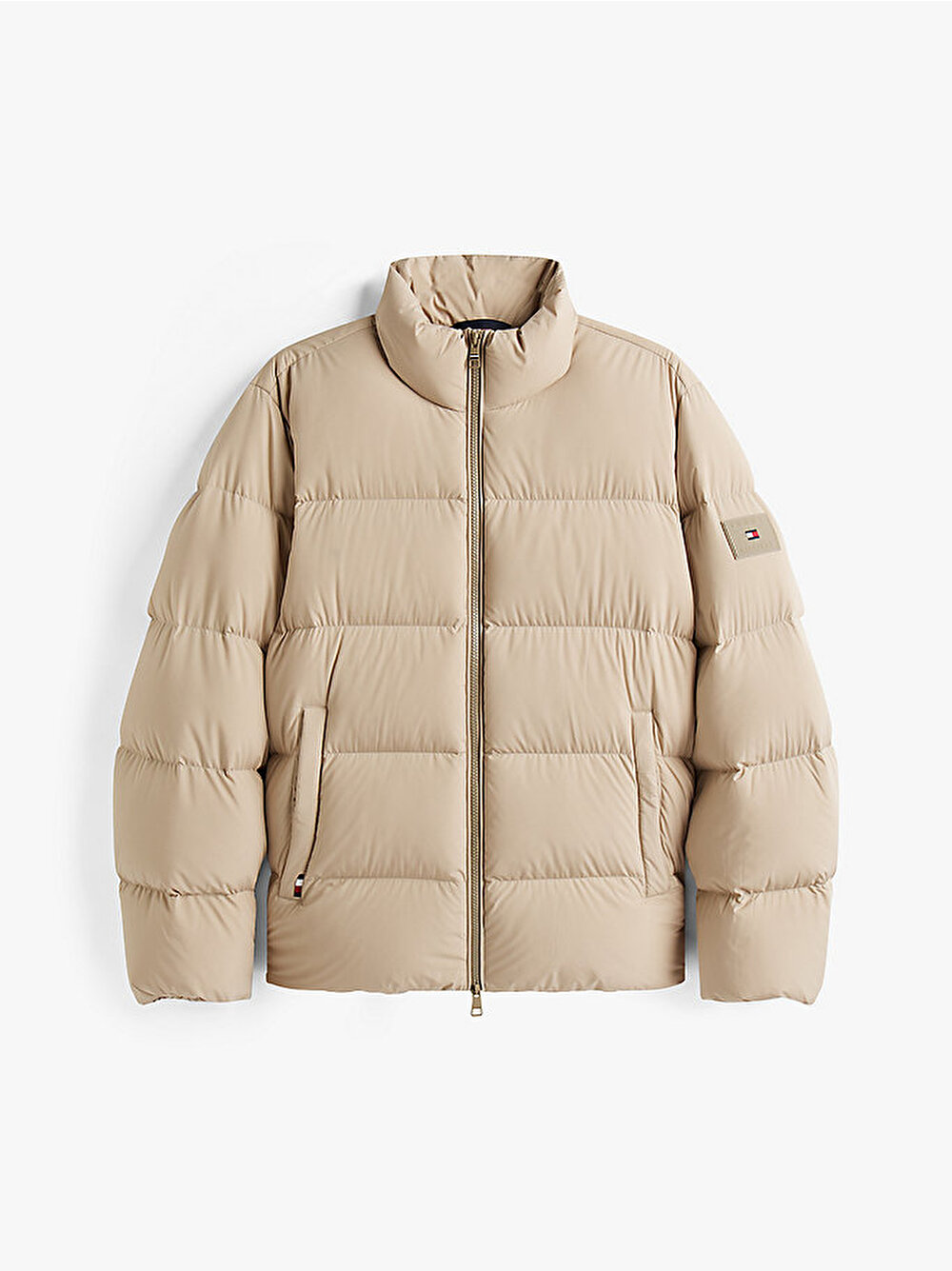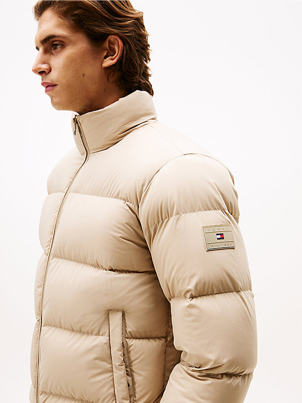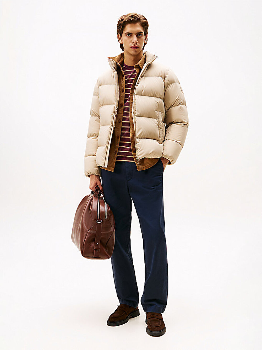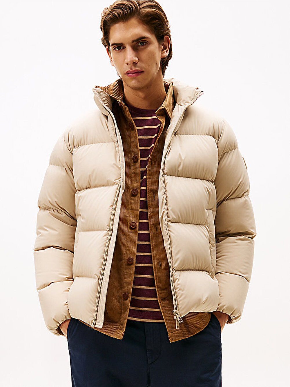 Sıcaklık düştüğünde, dik yakalı ve ekstra sıcaklık için kuş tüyü dolgulu bu şişme monta uzanın.