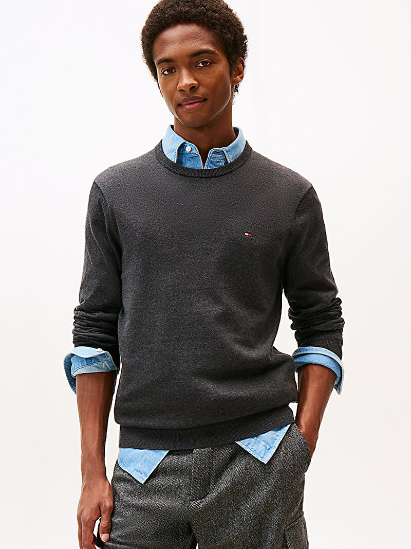 Saf penyeden üretilen bu zamansız bisiklet yaka kazak ile triko koleksiyonunuza sofistike bir dokunuş katın.