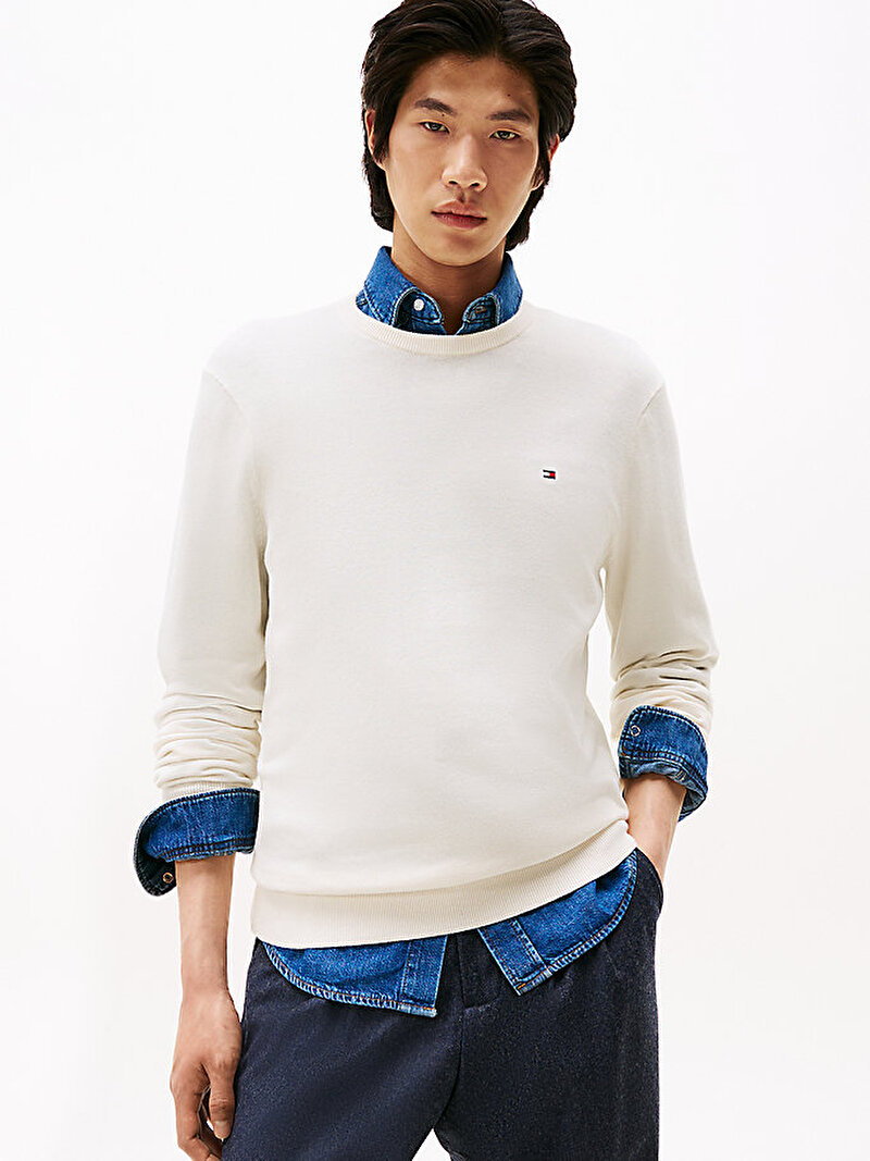 Saf penyeden üretilen bu zamansız bisiklet yaka kazak ile triko koleksiyonunuza sofistike bir dokunuş katın.