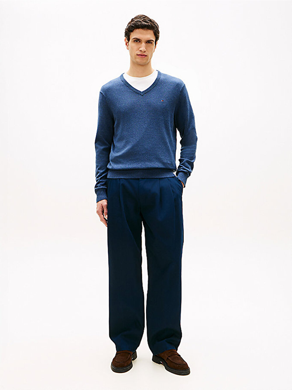 Modern V yakalı tasarımı ve klasik ribana örgüsü ile bu saf penye kazak, çok yönlü bir katmanlama parçasıdır.