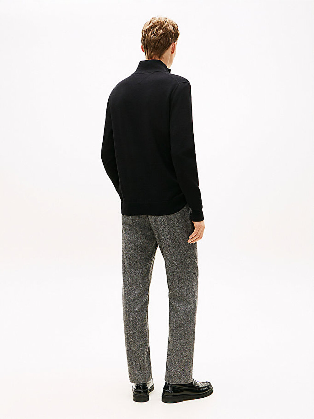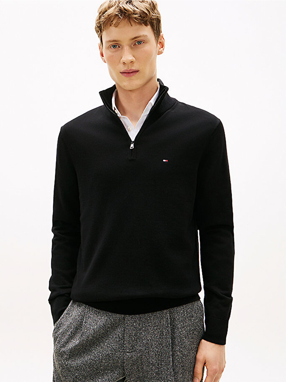 Bu zahmetsiz şıklık sunan zarif sportif kazak, sofistike bir görünüm için yüksek yakalı ve modern çeyrek fermuarlı tasarıma sahiptir.