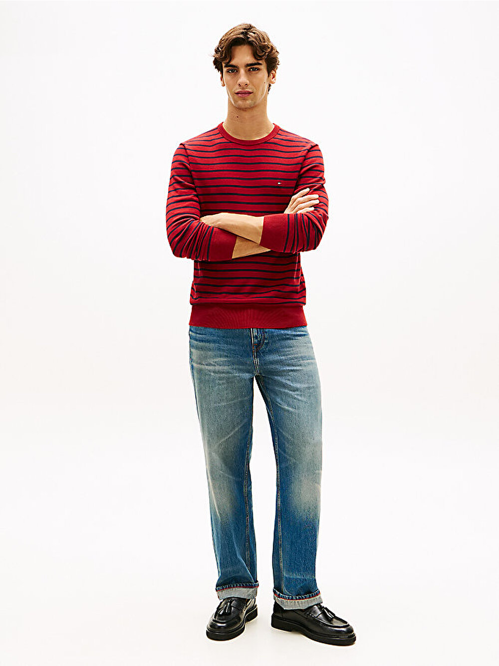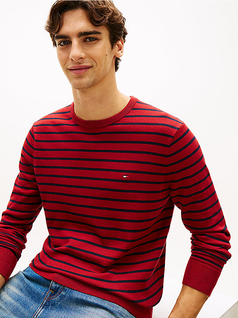 - • Göğüste Tommy Hilfiger bayrak işlemeli