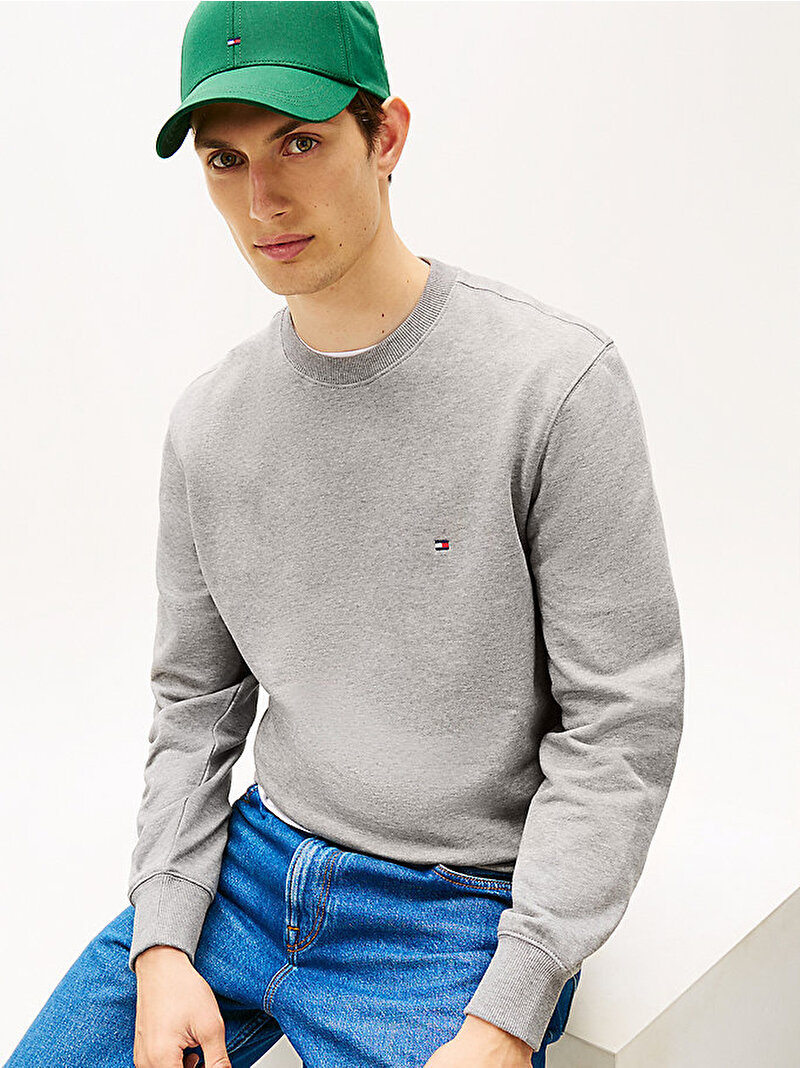 Bu pamuklu terry sweatshirt’ün klasik bisiklet yaka ve düşük omuz detayı, katmanlı giyime uygun imza bir rahat stil sunuyor.