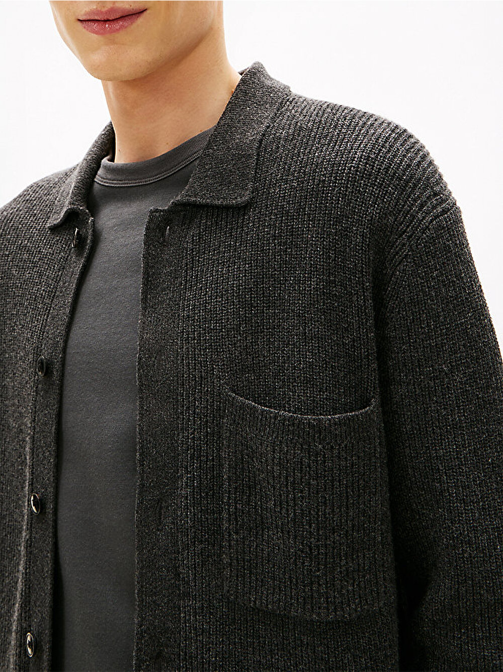 Lüks yünle üretilen ve balıkçı ribana örgü dokusuna sahip bu coach ceket, soğuk günler için trend bir seçimdir.