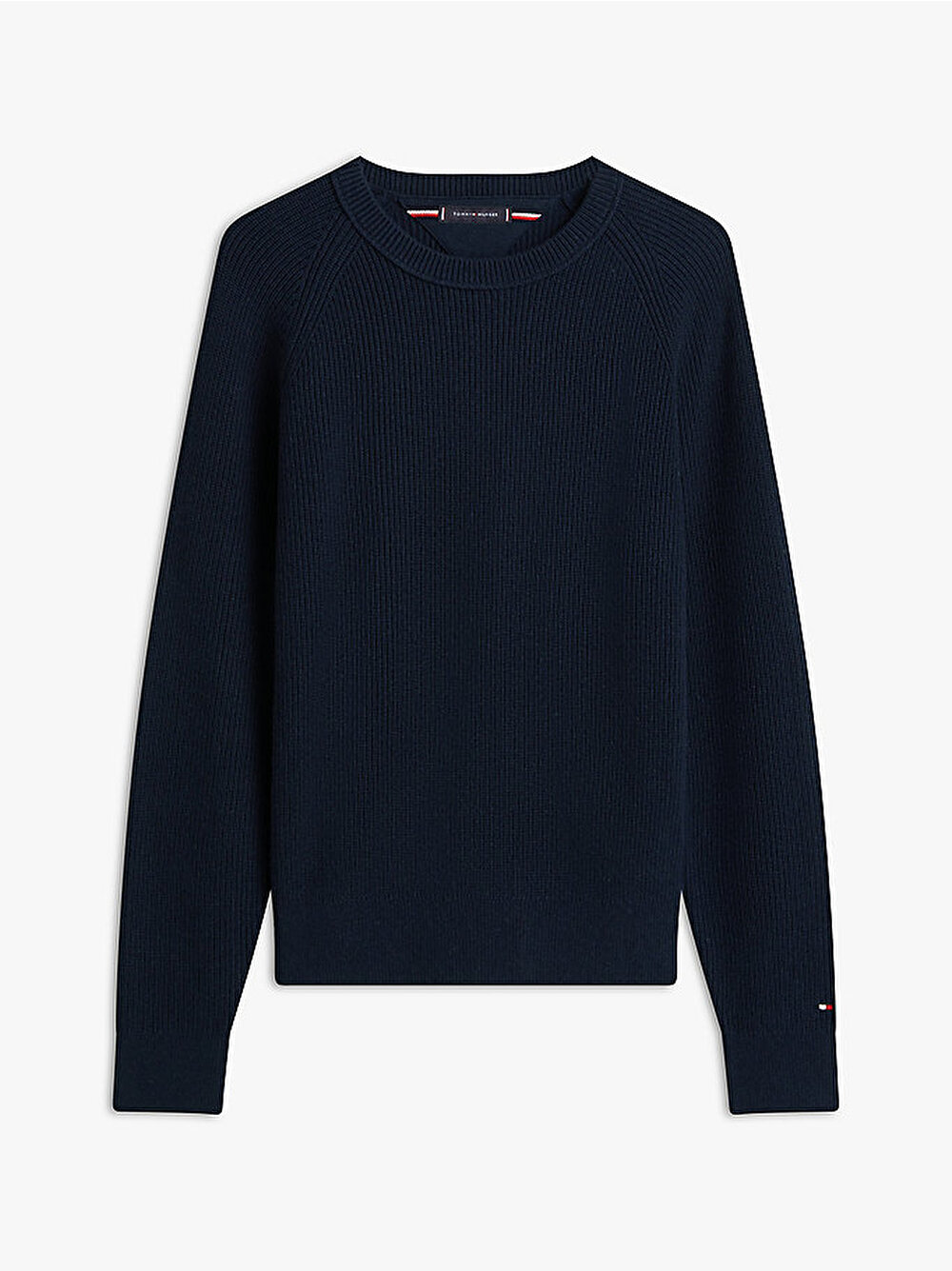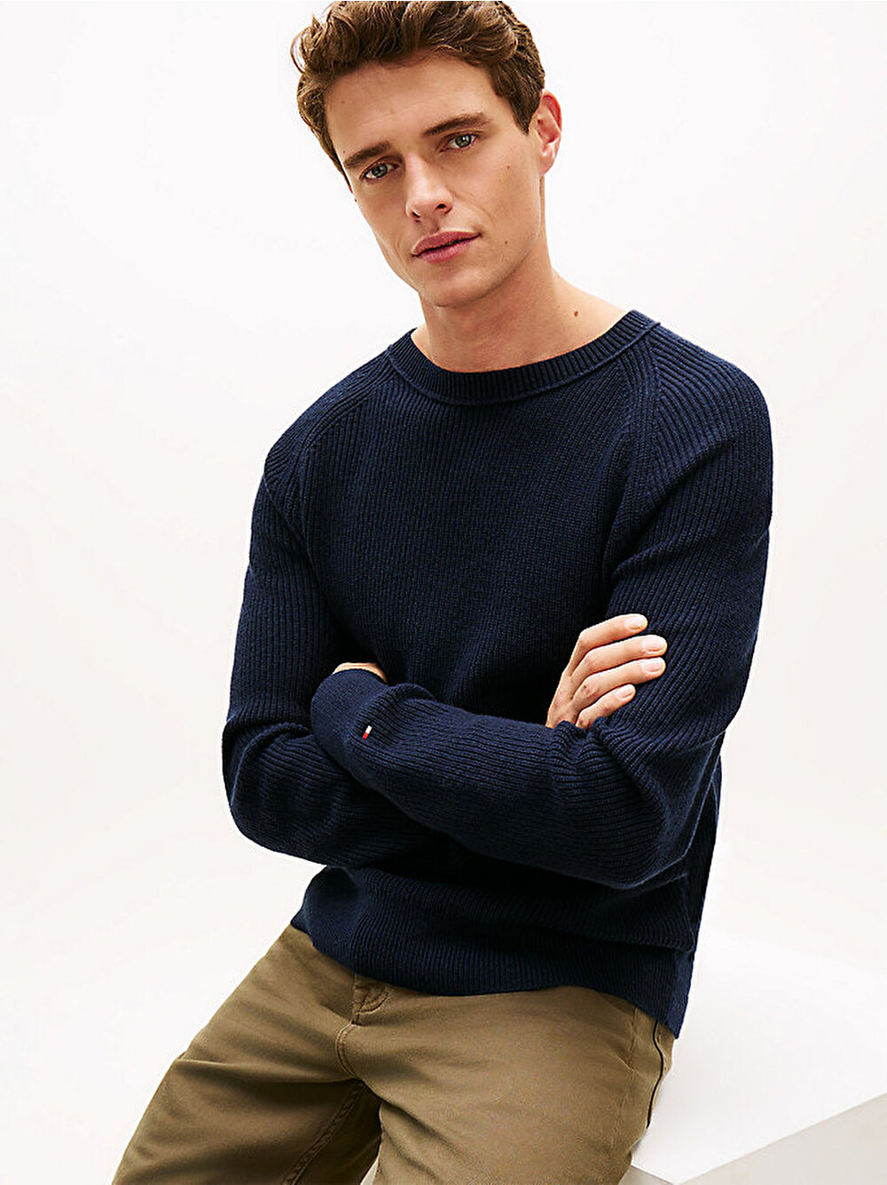 Premium yün karışımı balıkçı ribana örgüden üretilen bu bisiklet yaka kazakla serin günlerde sıcacık bir katman ekleyin.