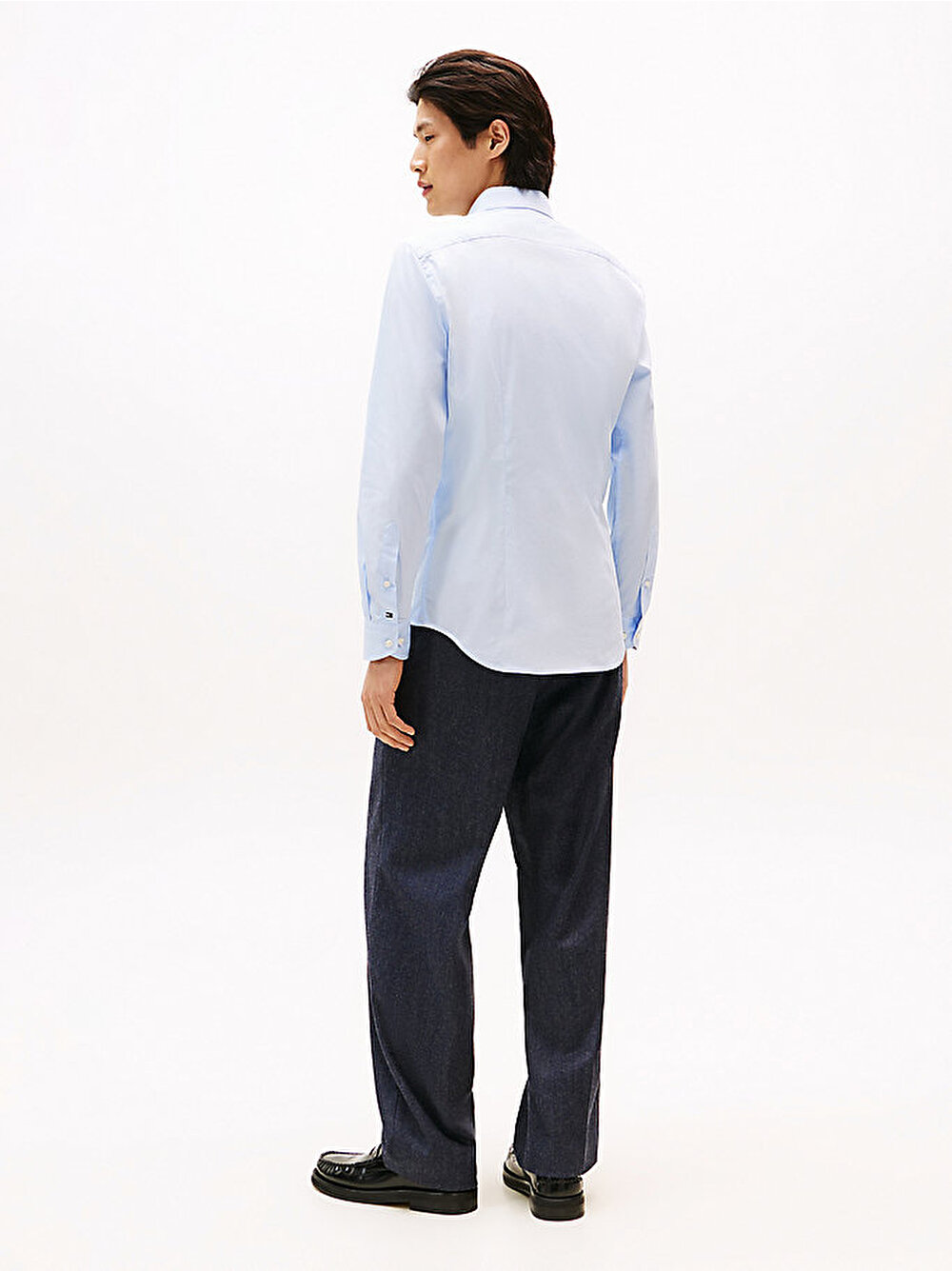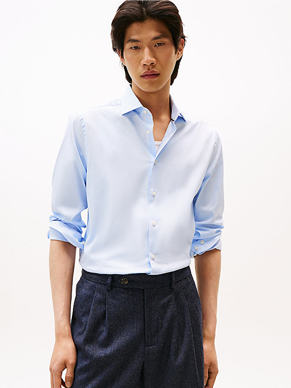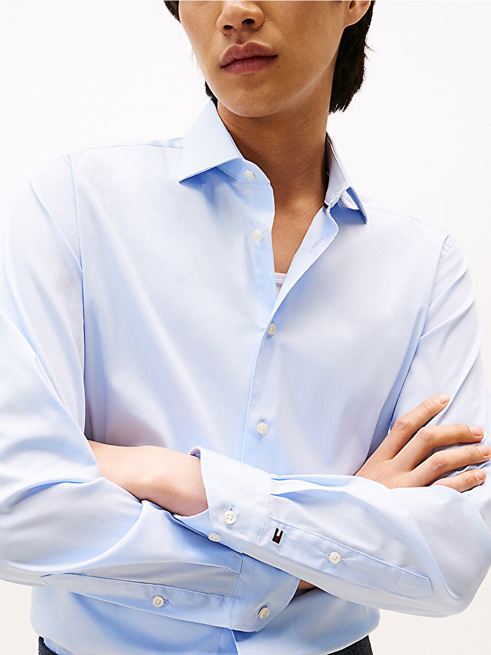 Bu slim fit gömlek, yapılandırılmış bir silueti yenilikçi Flex teknolojisiyle birleştirerek gün boyunca görünümünüzü korumanızı sağlar.