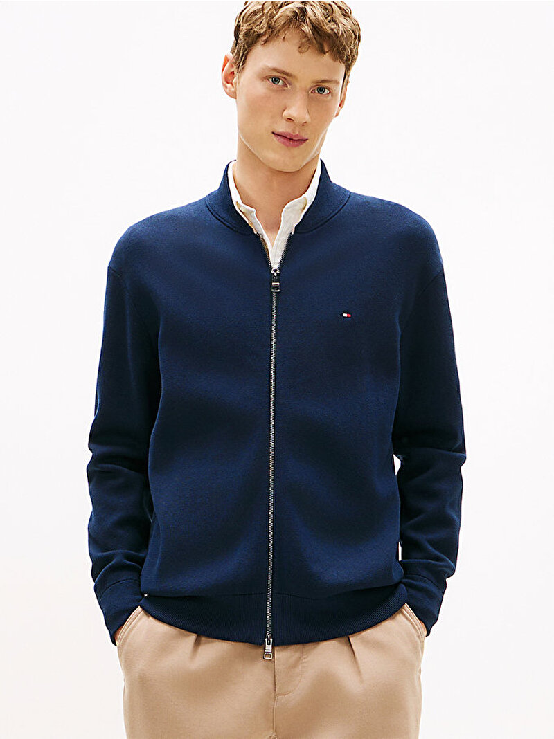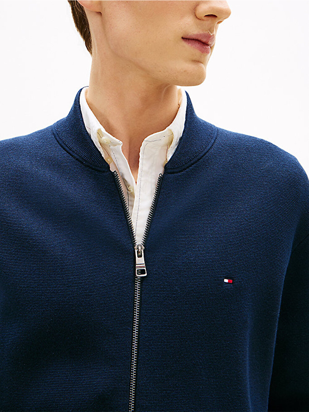 Pamuk-modal karışımından üretilen ve sportif beyzbol yaka ile tamamlanan bu tam fermuarlı ceketle stil sahibi bir katman ekleyin.