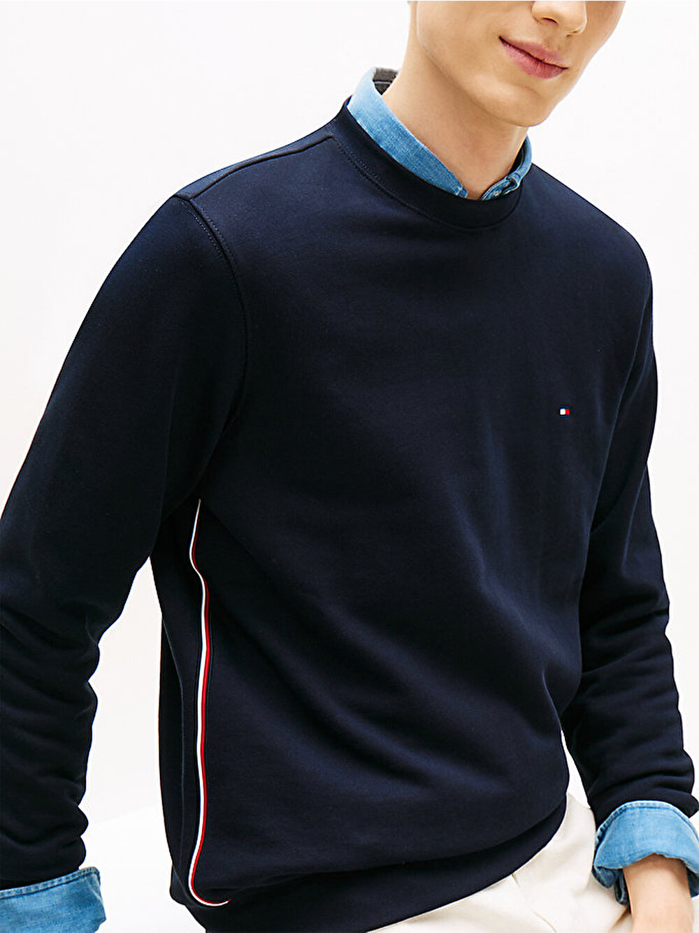 - • Göğüste Tommy Hilfiger bayrak işlemeli