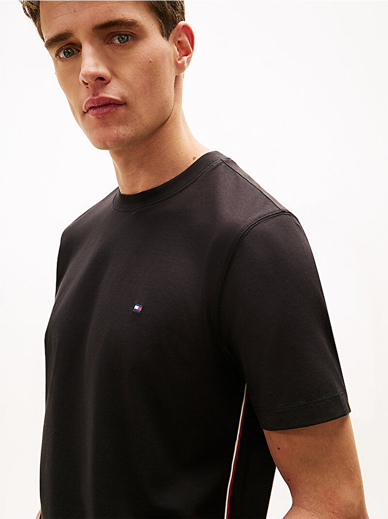 - Saf merserize pamuklu jarseden üretilmiş bu bisiklet yaka T-shirt, ve yan dikişlerdeki sportif global şerit detaylarıyla üst seviyeye taşınıyor.