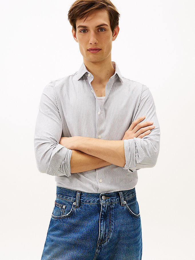 Tommy Hilfiger’ın en kaliteli erkek gömlek seçkisini keşfedin. Erkek gömlekleri seçkimizde sıcak havalar için ideal erkek keten gömleklerinden pastel tonlarda kısa kollu erkek gömleklerine kadar bir erkeğin şık görünümler yaratmasını sağlayacak her seçenek yer alıyor. Şık ve spor pantolon stillerimizle tamamlayın. Oxford veya kareli gömleklerimizle giyebileceğiniz takım elbiseler için özel dikim pantolonlarımızı ve şık ceketlerimizi keşfedin. Zarif ofis görünümleri için sizi rahat ettirirken şık duracak streç pamuklu beyaz erkek gömleğimizi deneyin. Akşam etkinlikleri için klasik erkek gömleklerimizi kontrast yaratacak veya bütün bir görünüme imza atacak düz paça jean pantolonlarımızla mükemmel bir şekilde kombine edebilirsiniz. Düğmeli veya spor gömlek ve polo seçkimiz, kusursuz bir stil için chino pantolon veya şortla giyilebilir.