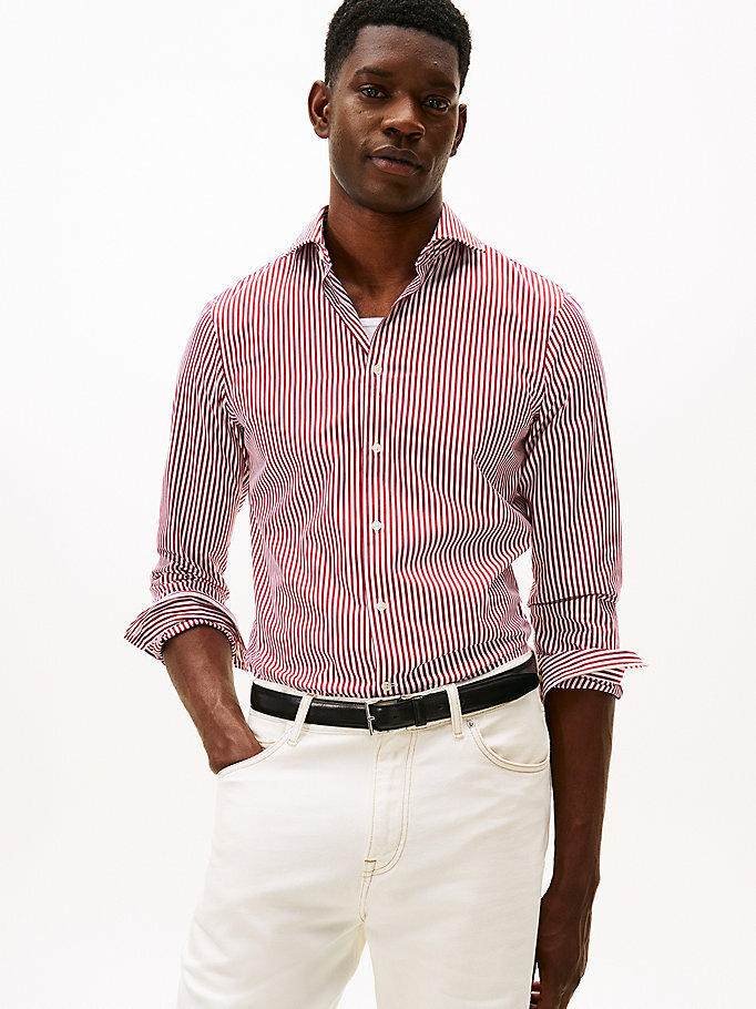 Tommy Hilfiger’ın en kaliteli erkek gömlek seçkisini keşfedin. Erkek gömlekleri seçkimizde sıcak havalar için ideal erkek keten gömleklerinden pastel tonlarda kısa kollu erkek gömleklerine kadar bir erkeğin şık görünümler yaratmasını sağlayacak her seçenek yer alıyor. Şık ve spor pantolon stillerimizle tamamlayın. Oxford veya kareli gömleklerimizle giyebileceğiniz takım elbiseler için özel dikim pantolonlarımızı ve şık ceketlerimizi keşfedin. Zarif ofis görünümleri için sizi rahat ettirirken şık duracak streç pamuklu beyaz erkek gömleğimizi deneyin. Akşam etkinlikleri için klasik erkek gömleklerimizi kontrast yaratacak veya bütün bir görünüme imza atacak düz paça jean pantolonlarımızla mükemmel bir şekilde kombine edebilirsiniz. Düğmeli veya spor gömlek ve polo seçkimiz, kusursuz bir stil için chino pantolon veya şortla giyilebilir.