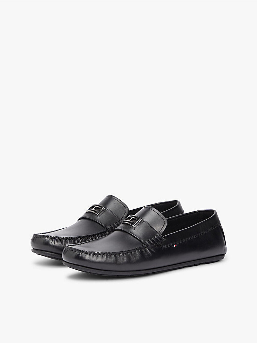 Bu klasik slip-on sürücü ayakkabısı yumuşak deriden üretilmiş olup parlak TH monogram plakasıyla markalı bir görünüm sunar.