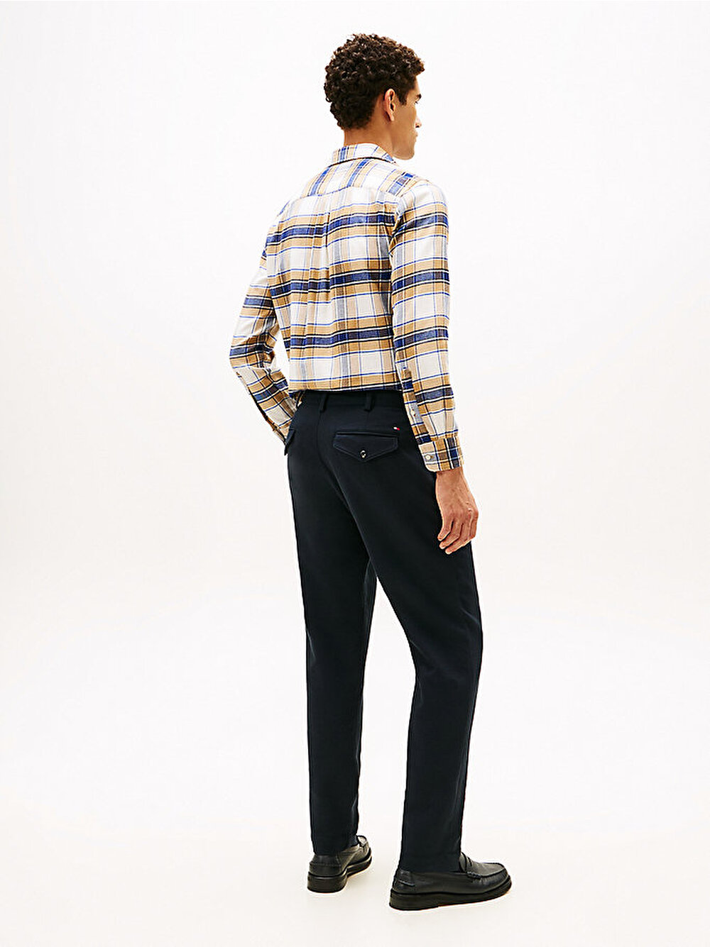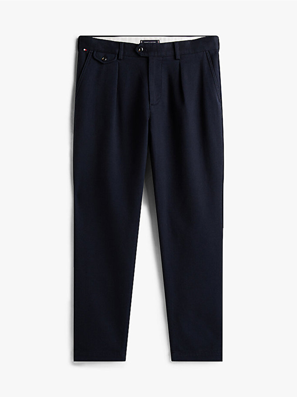 Bu smart pantolon, geleneksel terzi işi unsurları streç fırçalanmış pamuklu dimi kumaşla birleştiriyor.